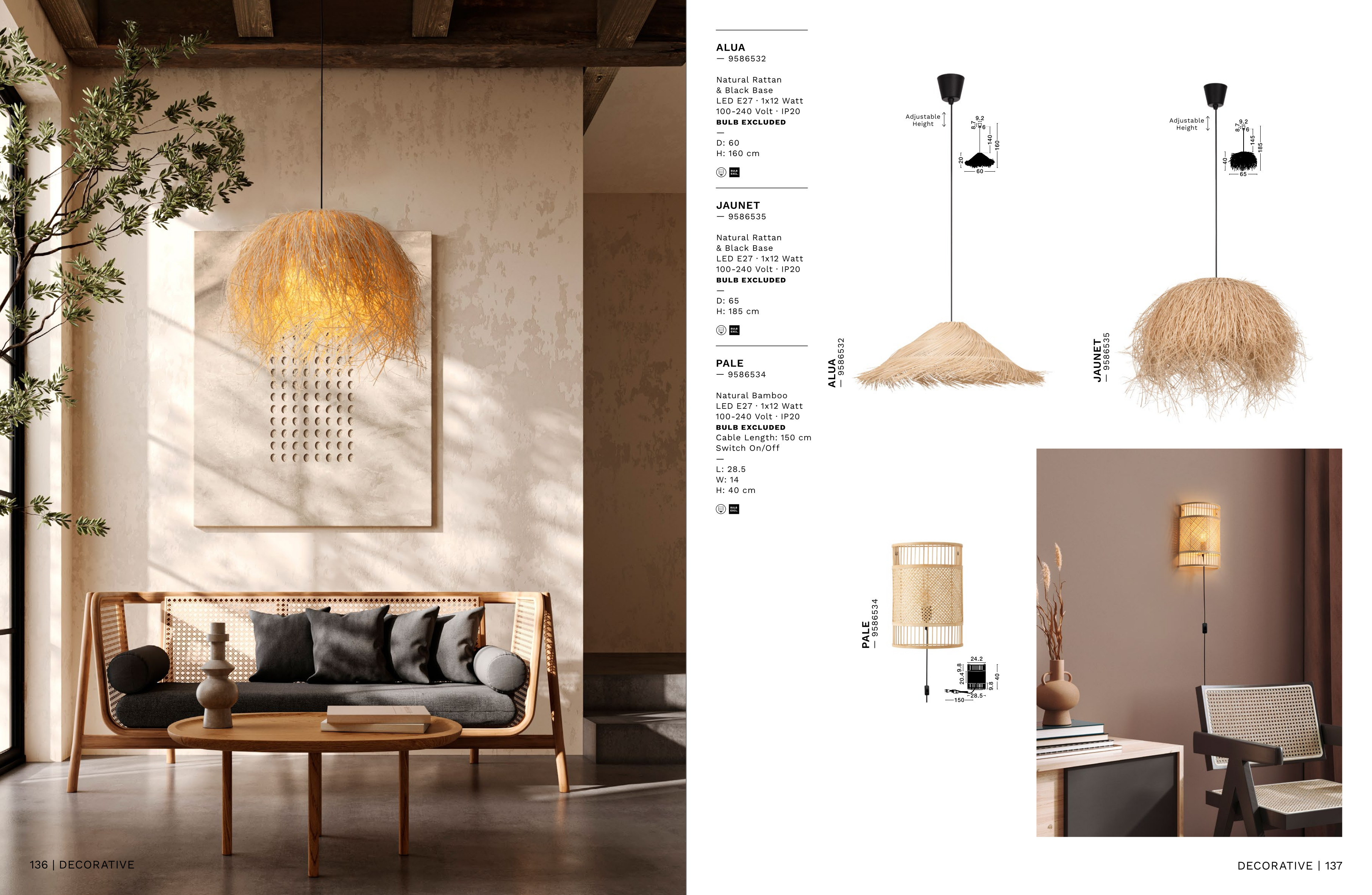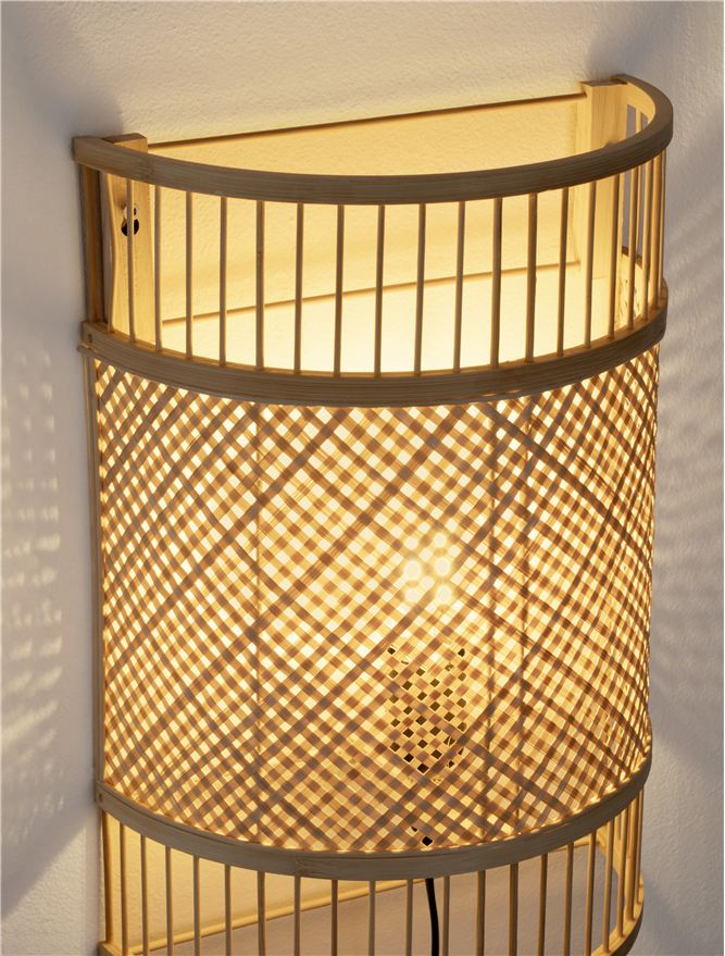 За стила и естетиката на обстановката допринасят, както цялостната визия и дизайн на осветителното тяло, така и вложените в изработката качествени материали, като: натурален бамбук, захранващ кабел с щепсел и превключвател ON/OFF с дължина 1.5m.