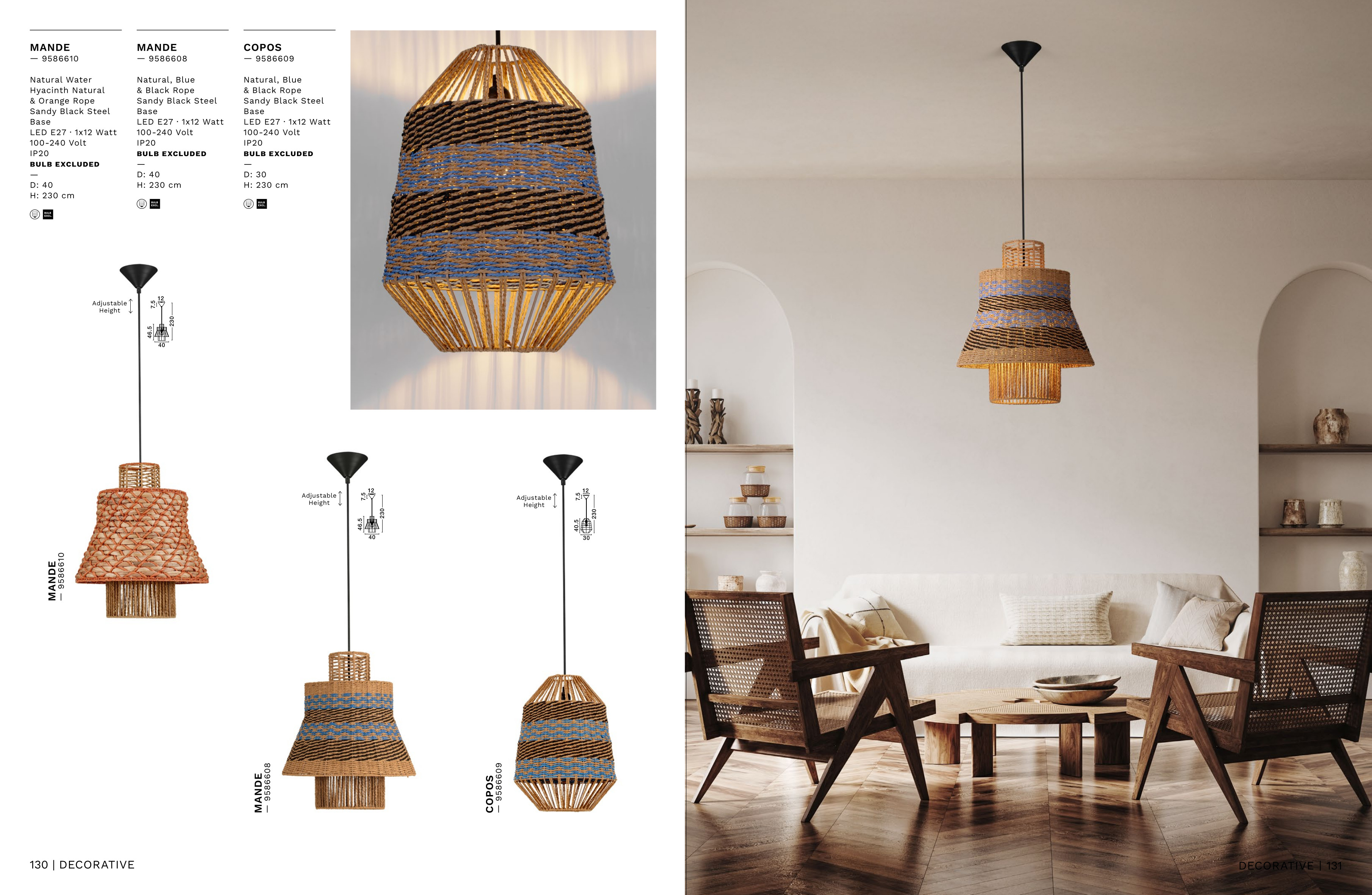 Осветителното тяло 9586608 ще осигури комфорт и естетика във всяко помещение, в което се постави. Цялостната визия и дизайн на лампата и вложените в изработката й материали, като натурално, синьо и черно въже, основа от матово черна стомана, ще допринесат за един неповторим стил. Благодарение на дългогодишния опит, качествените материали и строгия контрол на качеството на изработка на производителя Nova-Luce (Гърция), 9586608 е на високо европейско ниво.