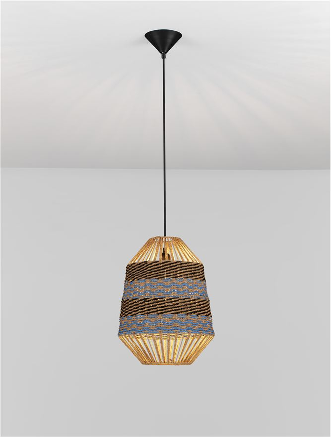 Осветителното тяло 9586609 ще осигури комфорт и естетика във всяко помещение, в което се постави. Цялостната визия и дизайн на лампата и вложените в изработката й материали, като натурално, синьо и черно въже, основа от матово черна стомана, ще допринесат за един неповторим стил. Благодарение на дългогодишния опит, качествените материали и строгия контрол на качеството на изработка на производителя Nova-Luce (Гърция), 9586609 е на високо европейско ниво.