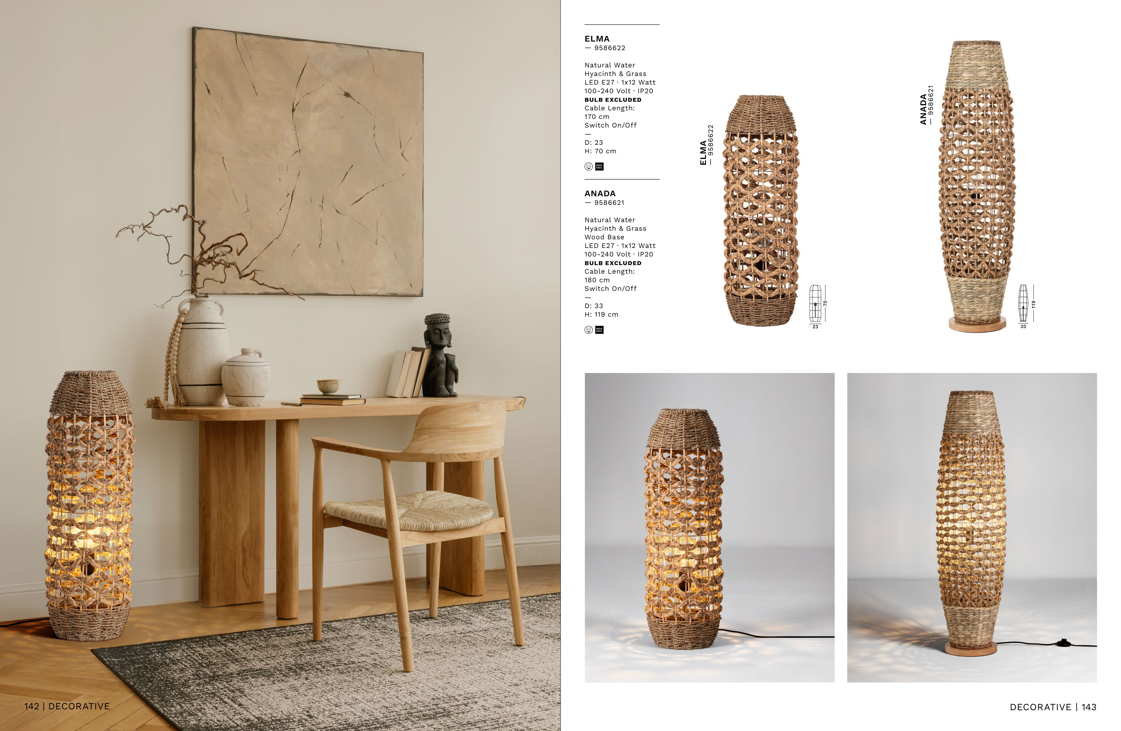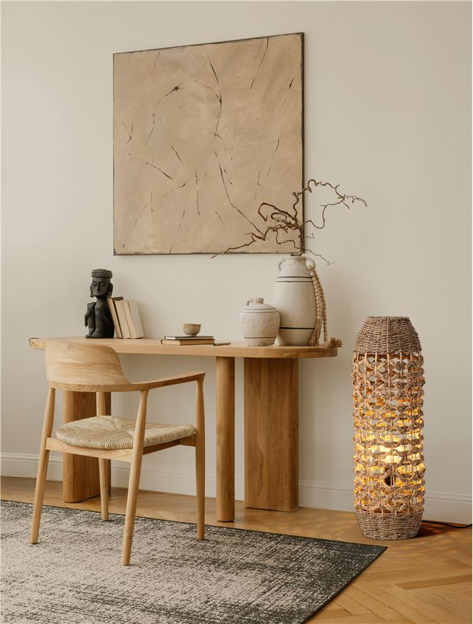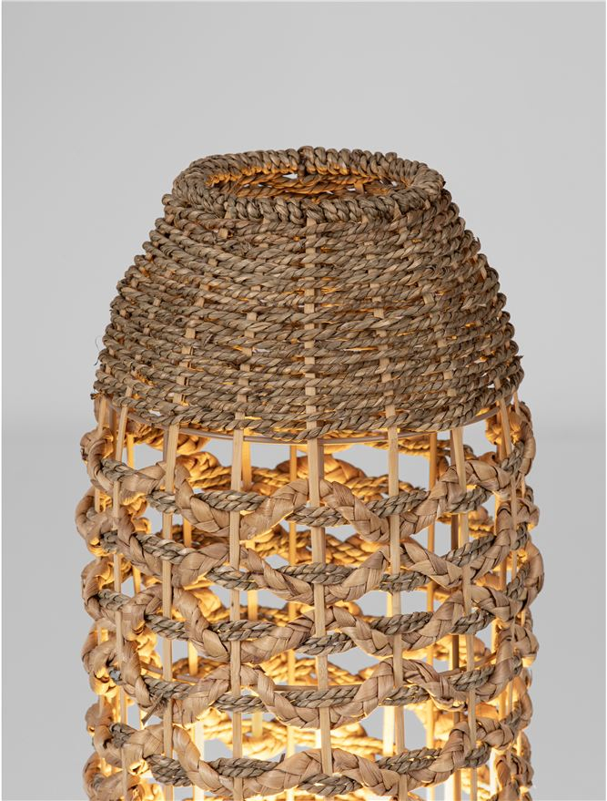 За стила и естетиката на обстановката в изключително висока степен допринасят, както цялостната визия, стилна изработка и елегантен дизайн на осветителното тяло, така също и използваните при изработката материали, като: натурален воден зюмбюл, трева, дължина на захранващия кабел 1.7m.