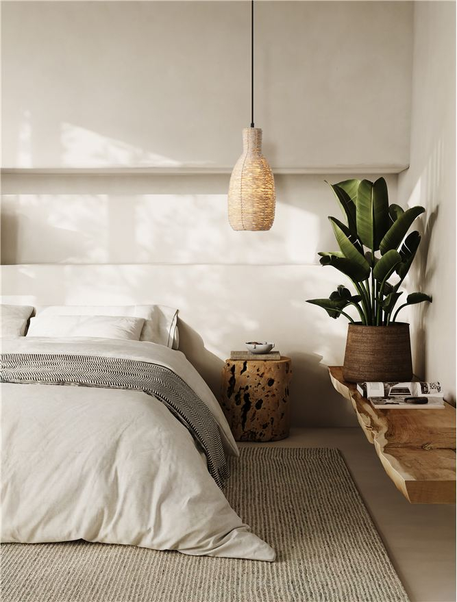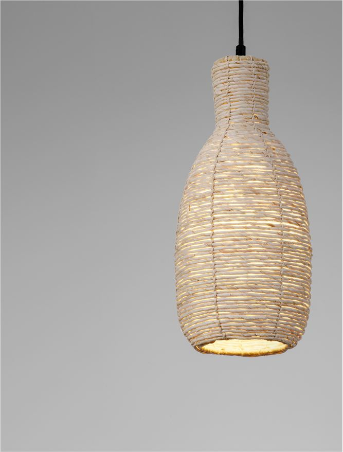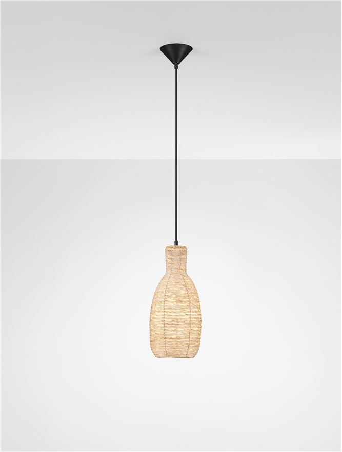 Стилът и естетиката на обстановката ще се обогатят благодарение, както на цялостната визия и дизайн на осветителното тяло, така и на вложените в изработката му, качествени материали, като: натурално царевично влакно, основа от матово черна стомана.