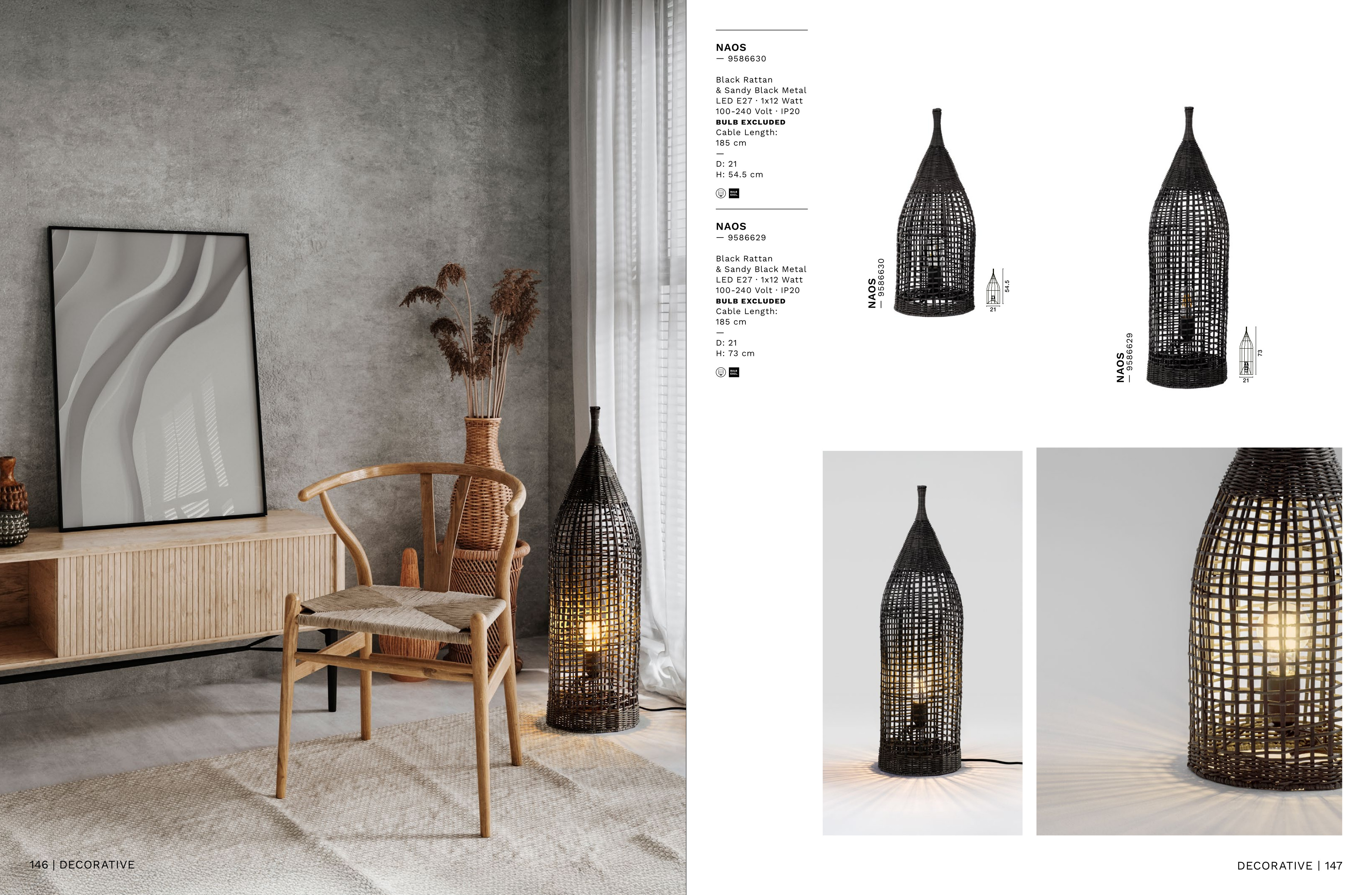 За стила и естетиката на обстановката в изключително висока степен допринасят, както цялостната визия, стилна изработка и елегантен дизайн на осветителното тяло, така също и използваните при изработката материали, като: черен ратан, основа от матово черна стомана.