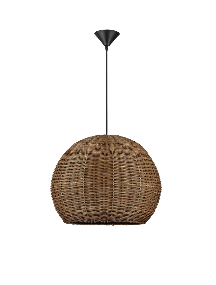 Стилът и естетиката на обстановката ще се обогатят благодарение, както на цялостната визия и дизайн на осветителното тяло, така и на вложените в изработката му, качествени материали, като: натурален ратан в тъмно кафяв цвят, стомана в черен цвят, захранващ кабел с черна текстилна оплетка.