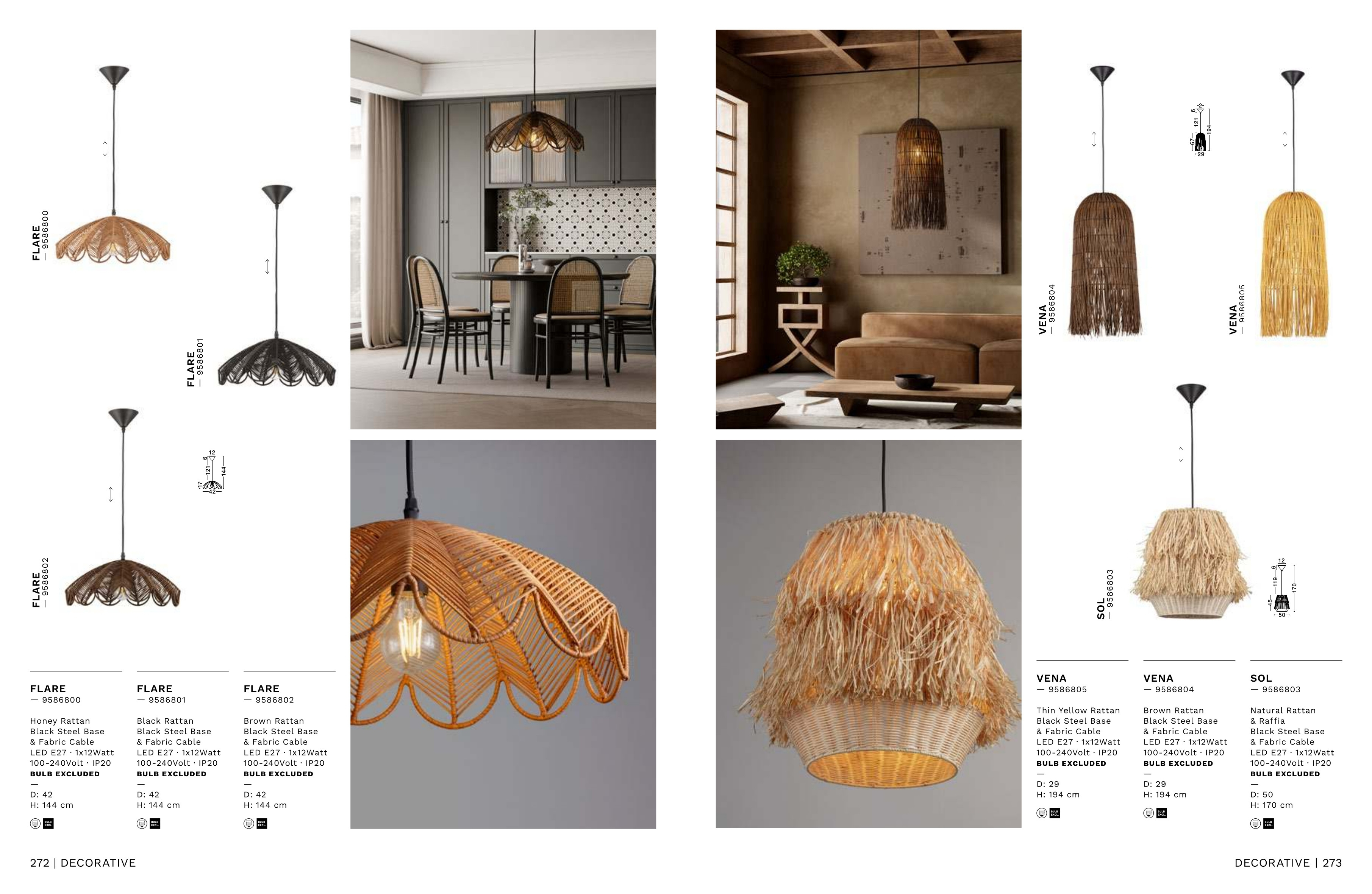 Стилът и естетиката на обстановката ще се обогатят благодарение, както на цялостната визия и дизайн на осветителното тяло, така и на вложените в изработката му, качествени материали, като: ратан в тъмно кафяв цвят, стомана в матово черно, кабел с черна текстилна оплетка.