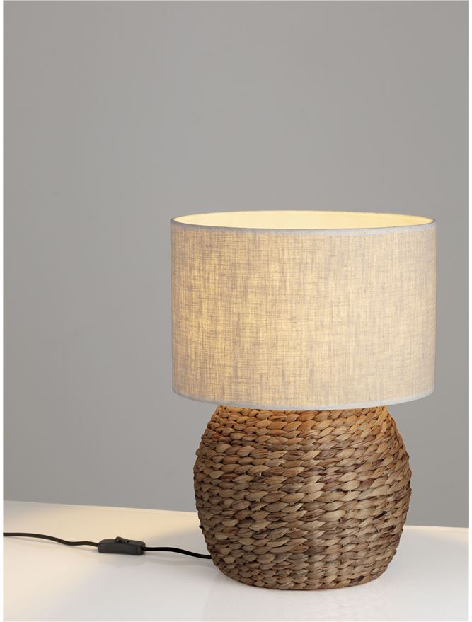 Стилът и естетиката на интериора ще се обогатят благодарение, както на цялостната визия, стил и дизайн на осветителното тяло, така и на вложените от производителя в изработката на 9586806, качествени материали, като: естествен воден хиацинт (зюмбюл), абажур в бежово.
