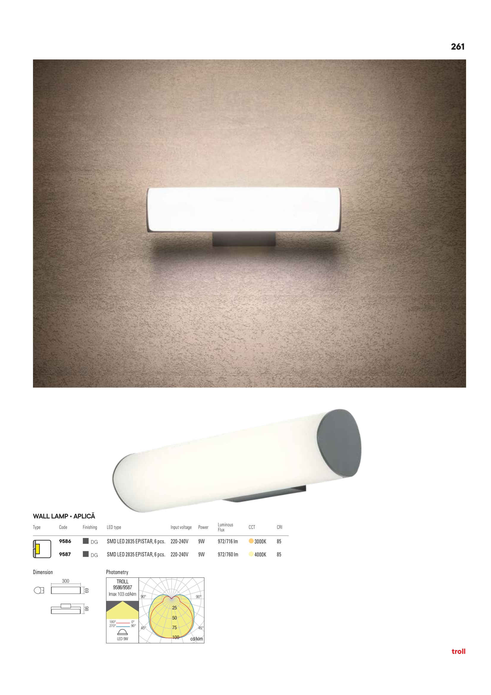 Осветителното тяло 9587 представлява аплик, външна лампа в съвременен стил. 9587 е от категорията осветителни тела и е подходящо за осветяване на различни помещения и пространства като: външно осветление, фасадно осветление.