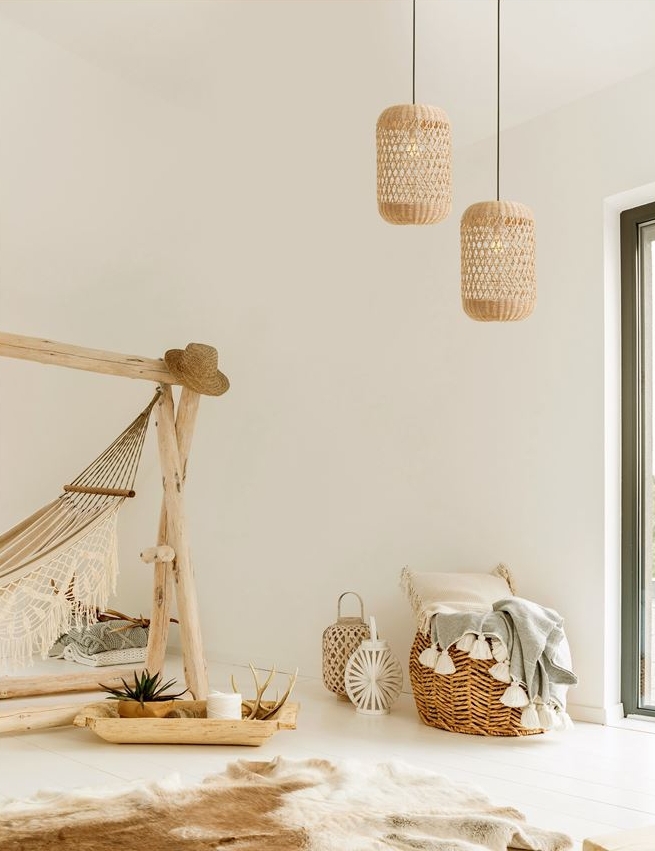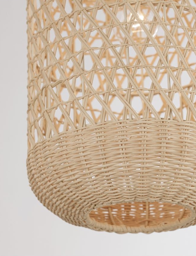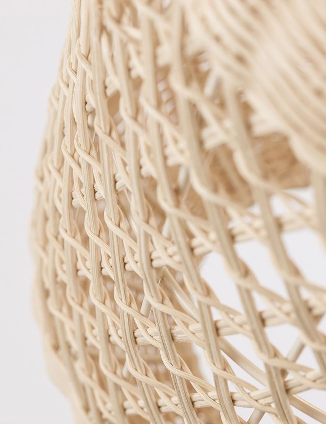 Стилът и естетиката на обстановката ще се обогатят благодарение, както на цялостната визия и дизайн на осветителното тяло, така и на вложените в изработката му, качествени материали, като: натурални влакна от ратанова палма, кабел в черна текстилна оплетка.