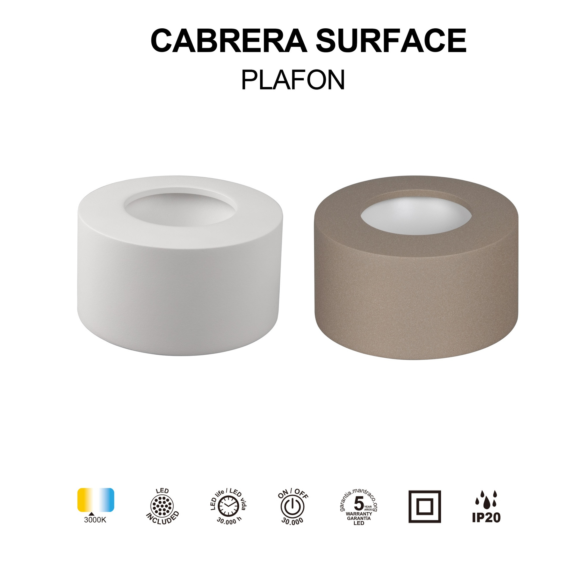 Осветителното тяло 9589 LED Ceiling 7W 3000K Sand CABRERA SURFACE представлява лед луничка / луна в съвременен стил. 9589 LED Ceiling 7W 3000K Sand CABRERA SURFACE е от категорията и е подходящо за осветяване на различни помещения и пространства като: всекидневна / хол, спалня, кухня, трапезария, коридор, антре, стълбище, офис.