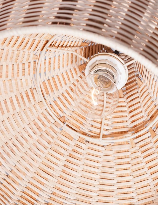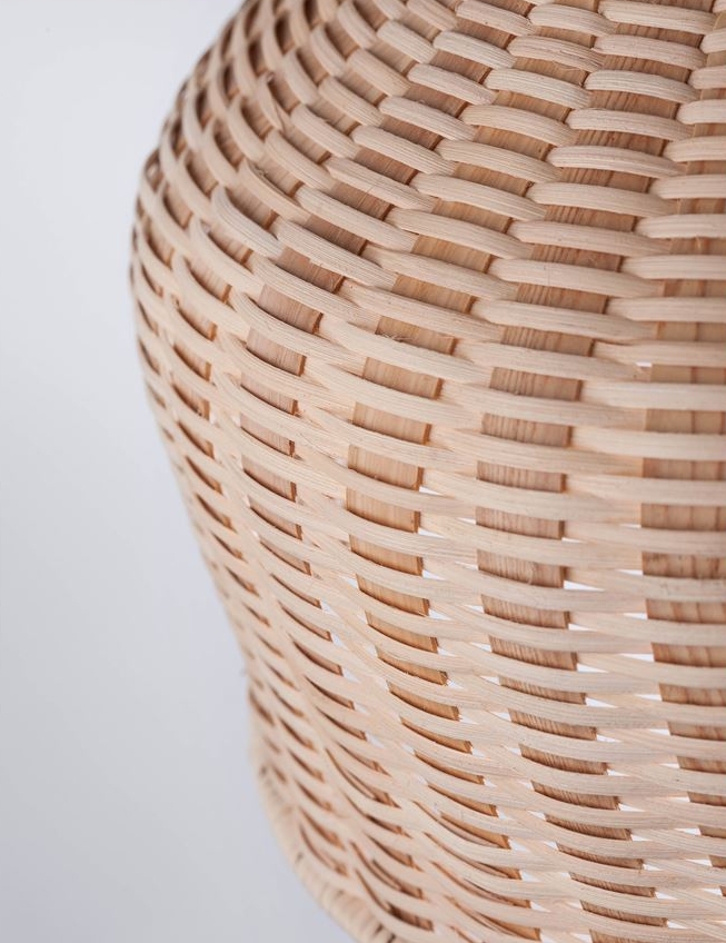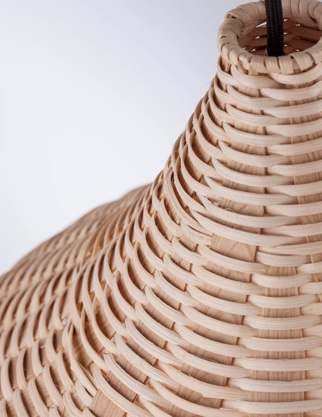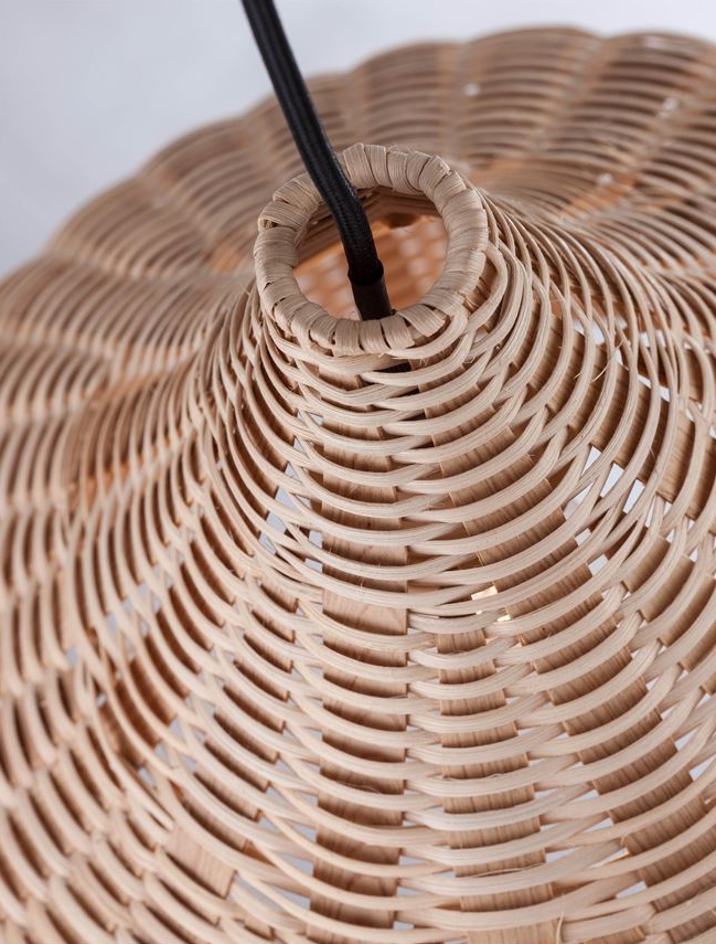 натурални влакна от ратанова палма, дърво, кабел с черна текстилна оплетка