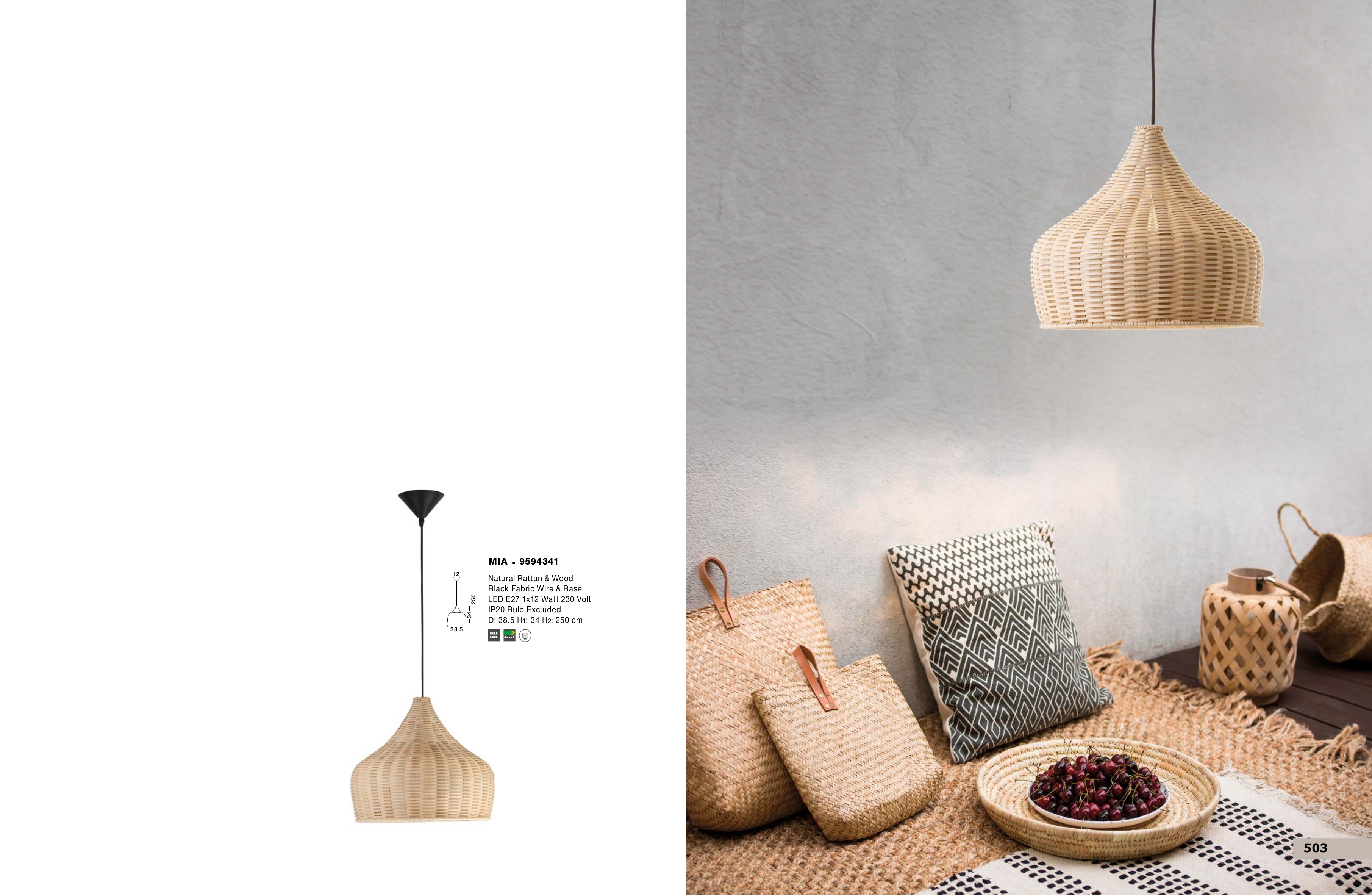 Осветителното тяло 9594341 ще осигури комфорт и естетика във всяко помещение, в което се постави. Цялостната визия и дизайн на лампата и вложените в изработката й материали, като натурални влакна от ратанова палма, дърво, кабел с черна текстилна оплетка, ще допринесат за един неповторим стил. Благодарение на дългогодишния опит, качествените материали и строгия контрол на качеството на изработка на производителя Nova-Luce (Гърция), 9594341 е на високо европейско ниво.