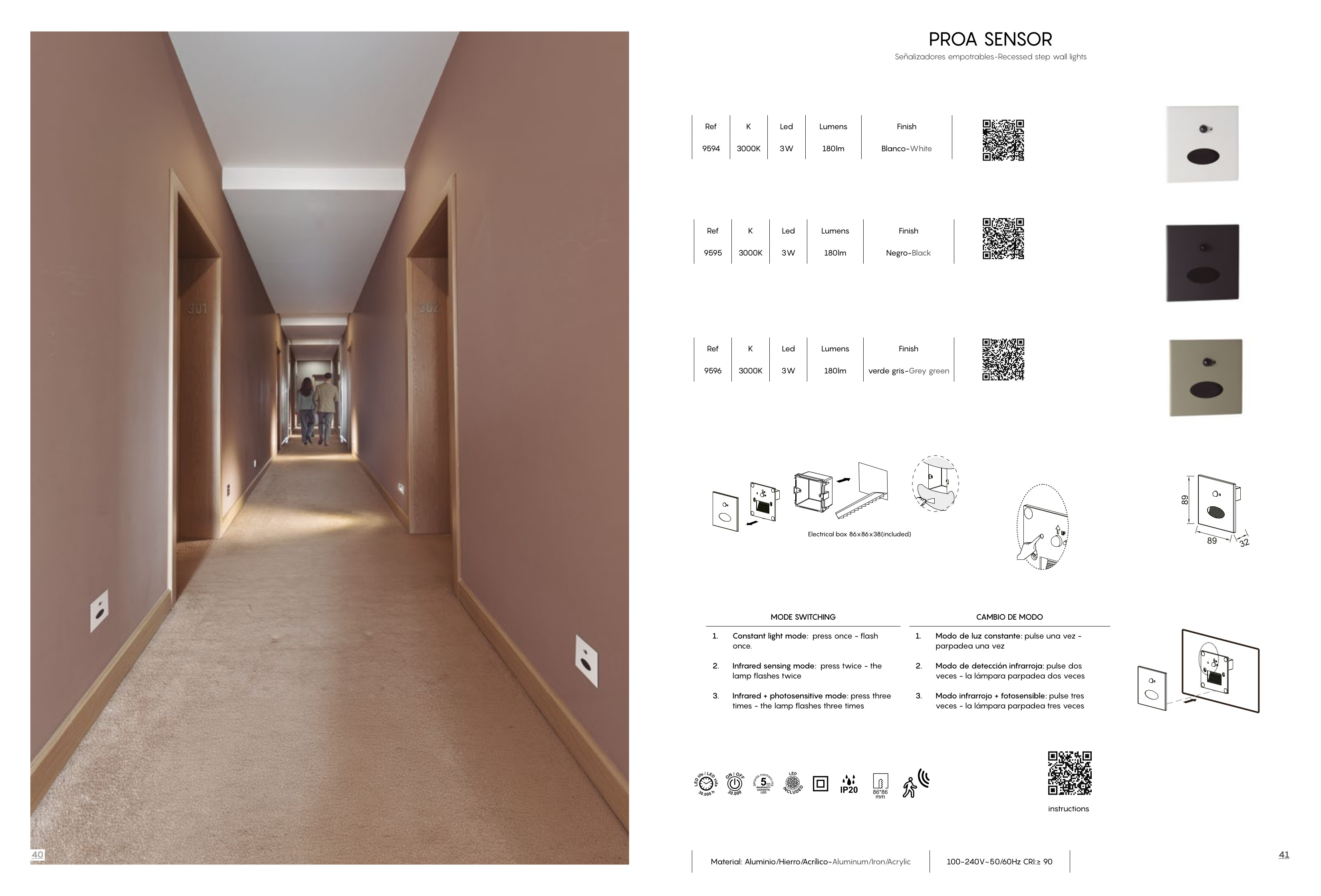 Лед аплик 9595 LED Wall Washer 3W 3000K Black PROA ще осигури комфорт и естетика във всяко помещение, в което се постави. Цялостната визия и дизайн на led лампата и вложените в изработката й материали, като алуминий в черно, инфрачервен сензор за движение с възможност за настройване, конзолната кутия е включена в комплекта, ще допринесат за един неповторим стил. Благодарение на дългогодишния опит в производството на лед осветление, качествените материали и строгия контрол на качеството на изработка на производителя Mantra (Испания), 9595 LED Wall Washer 3W 3000K Black PROA е на високо европейско ниво.