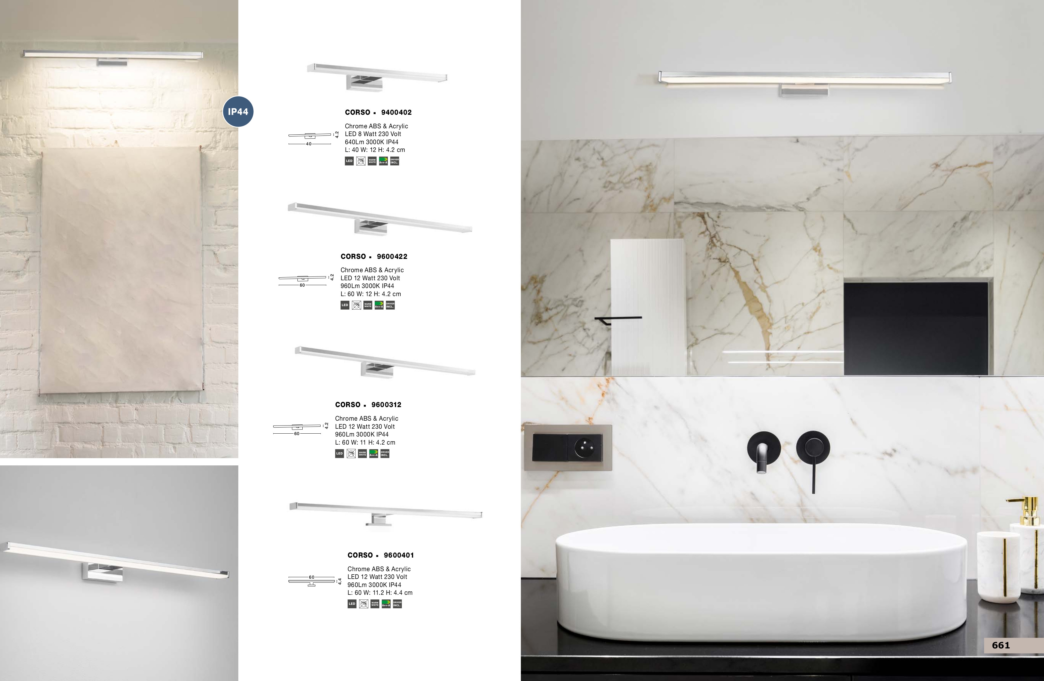 Осветителното тяло 9600401 представлява аплик в съвременен стил. 9600401 е от категорията осветителни тела и е подходящо за осветяване на различни помещения и пространства като: баня.