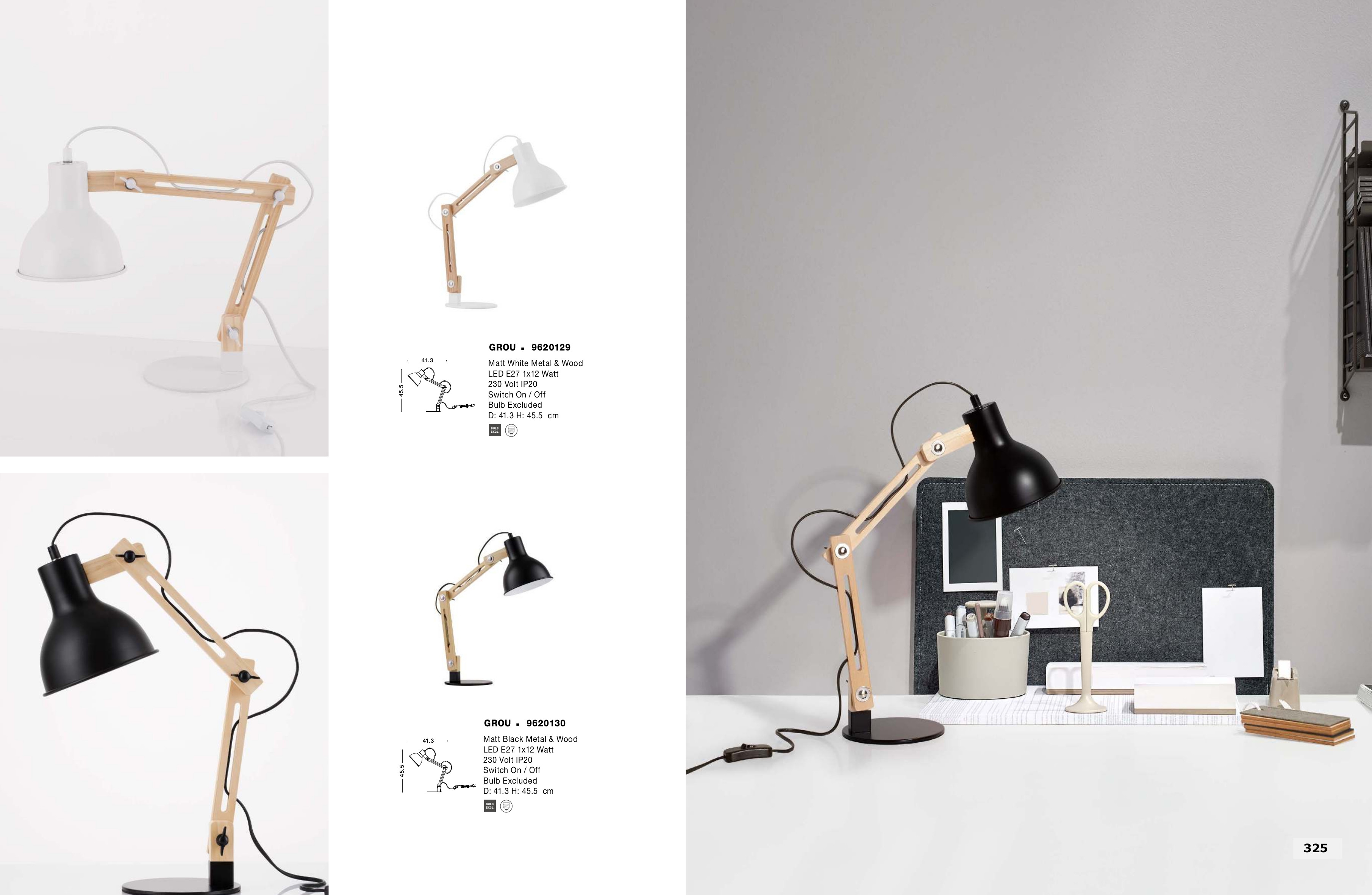 Осветителното тяло 9620130 представлява настолна лампа в съвременен стил. 9620130 е от категорията осветителни тела и е подходящо за осветяване на различни помещения и пространства като: всекидневна / хол, спалня, трапезария, офис.