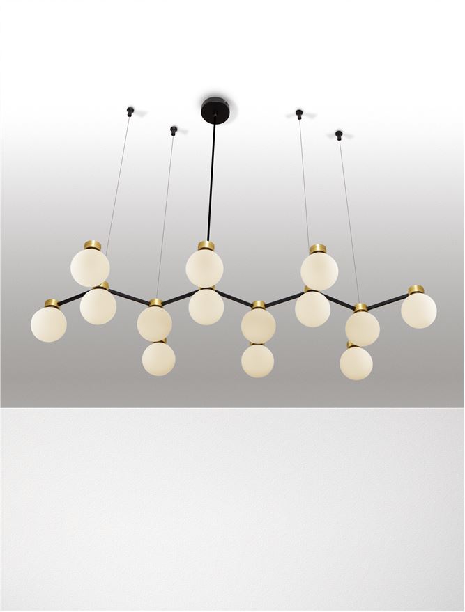метал в цвят черен мат, метал в цвят златен сатен, опалово бяло стъкло
