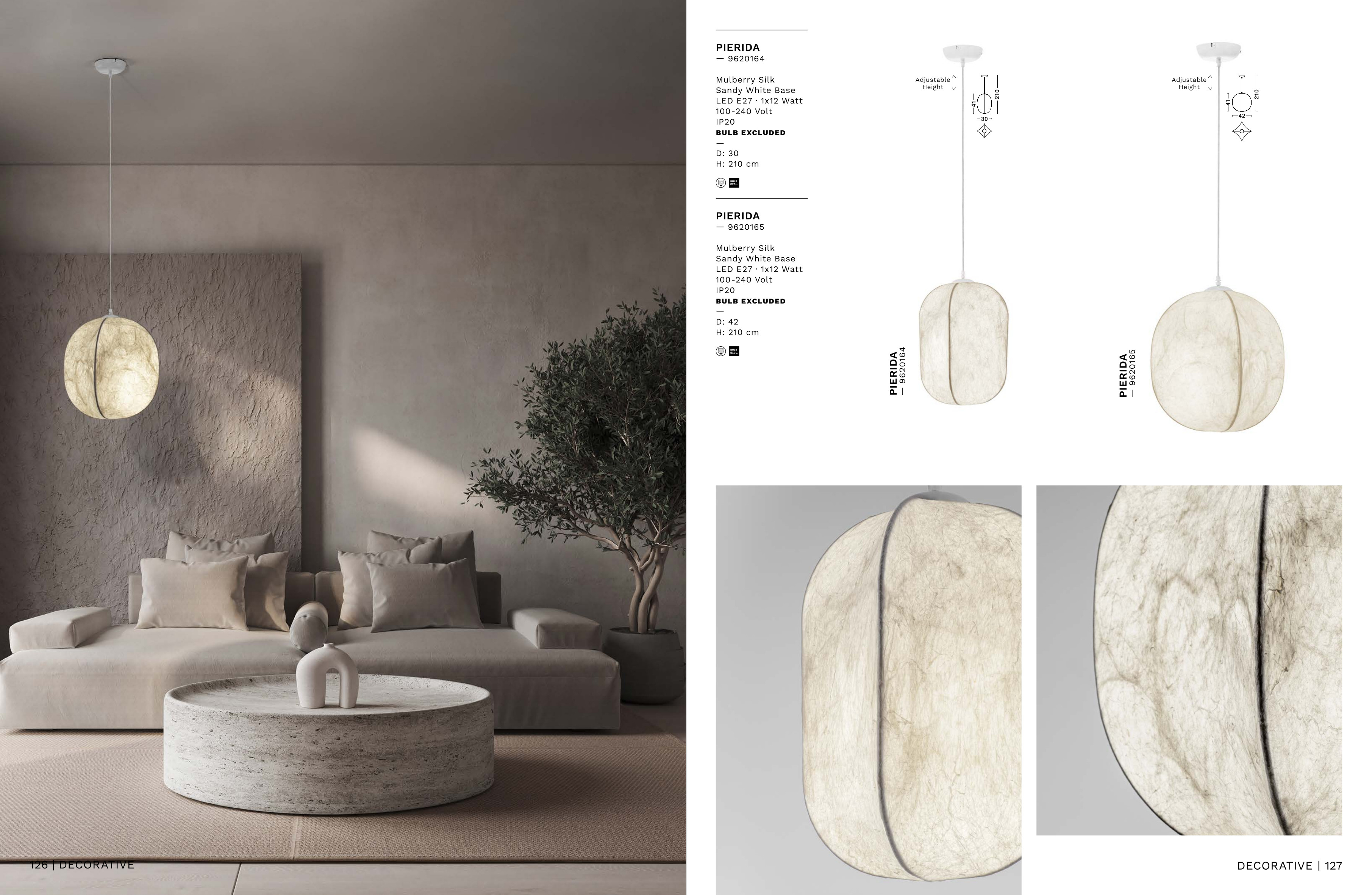 Осветителното тяло 9620165 ще осигури комфорт и естетика във всяко помещение, в което се постави. Цялостната визия и дизайн на лампата и вложените в изработката й материали, като пясъчно бяла коприна от черничеви буби, ще допринесат за един неповторим стил. Благодарение на дългогодишния опит, качествените материали и строгия контрол на качеството на изработка на производителя Nova-Luce (Гърция), 9620165 е на високо европейско ниво.