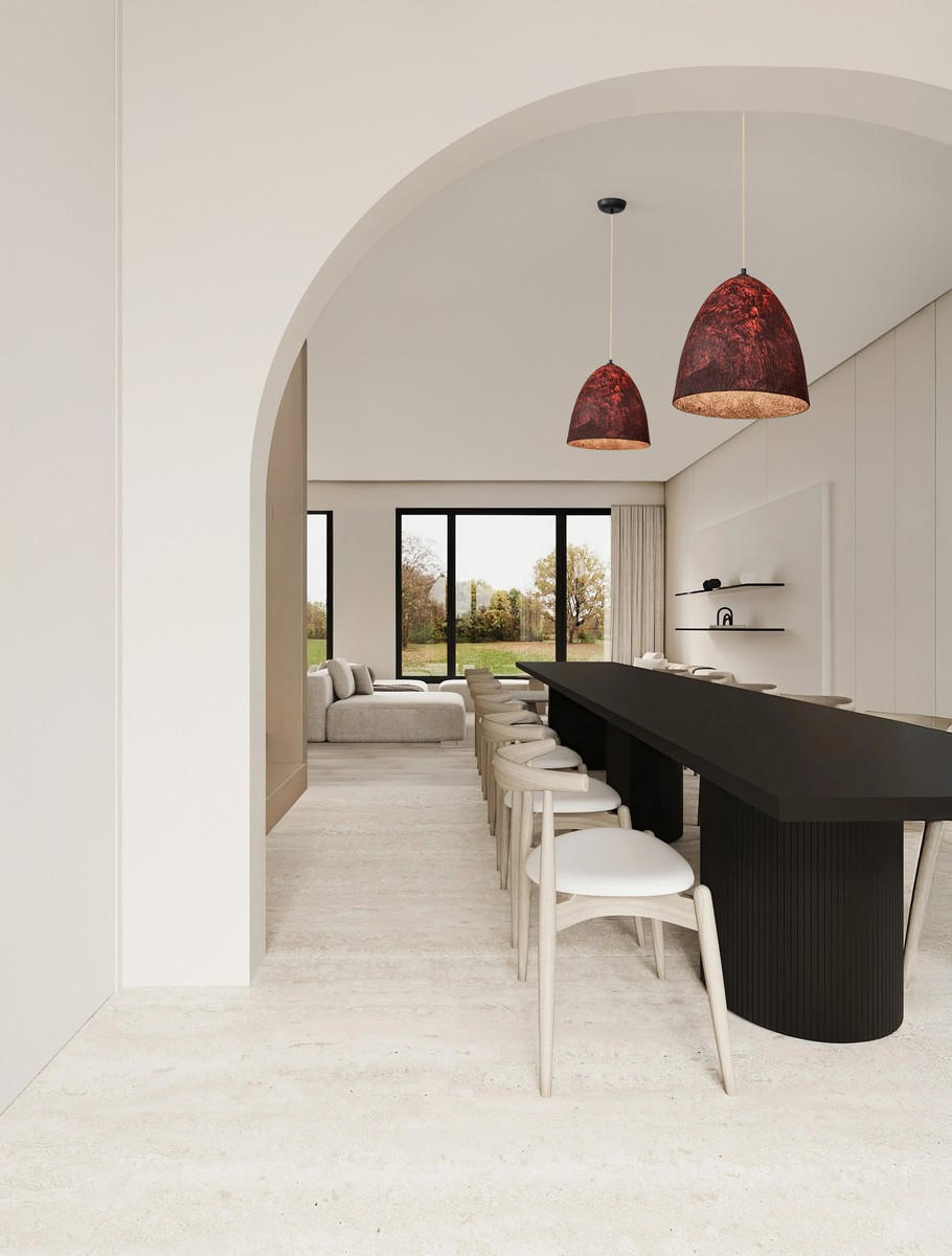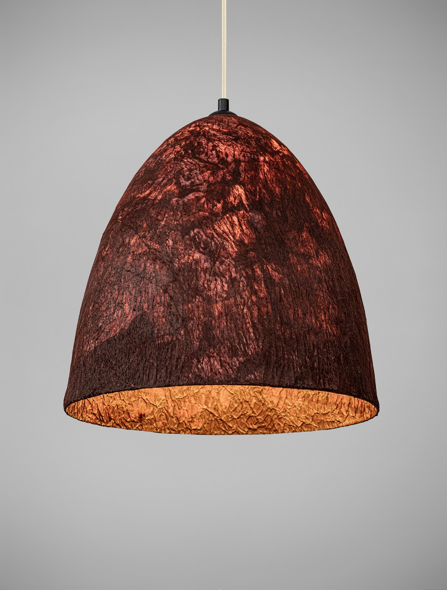 Стилът и естетиката на обстановката ще се обогатят благодарение, както на цялостната визия и дизайн на осветителното тяло, така и на вложените в изработката му, качествени материали, като: червена хартия, естествена черничева коприна, метал в матово черен цвят.