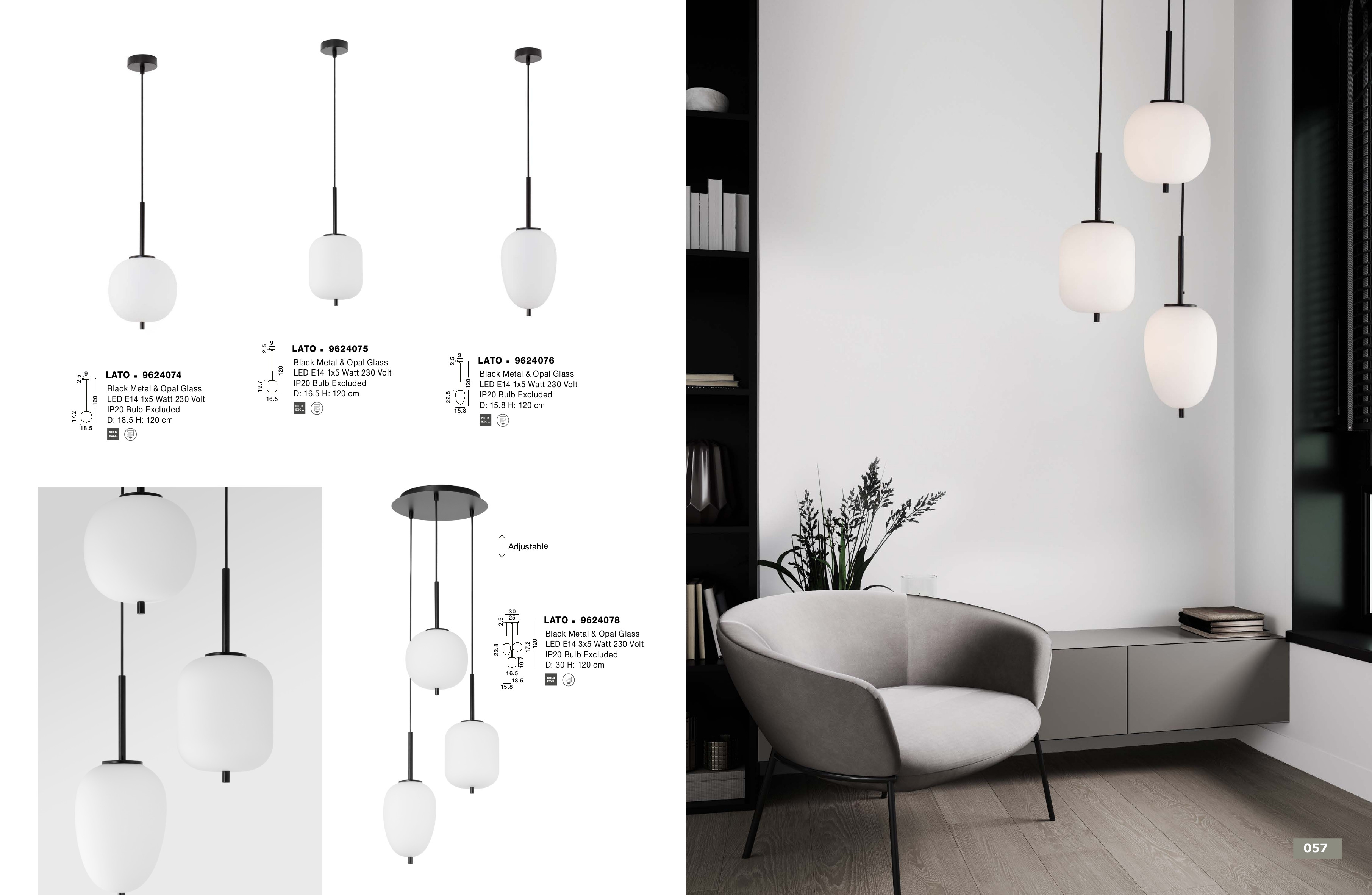 Стилът и естетиката на обстановката ще се обогатят благодарение, както на цялостната визия и дизайн на осветителното тяло, така и на вложените в изработката му, качествени материали, като: метал в черен цвят, опалово бяло стъкло.