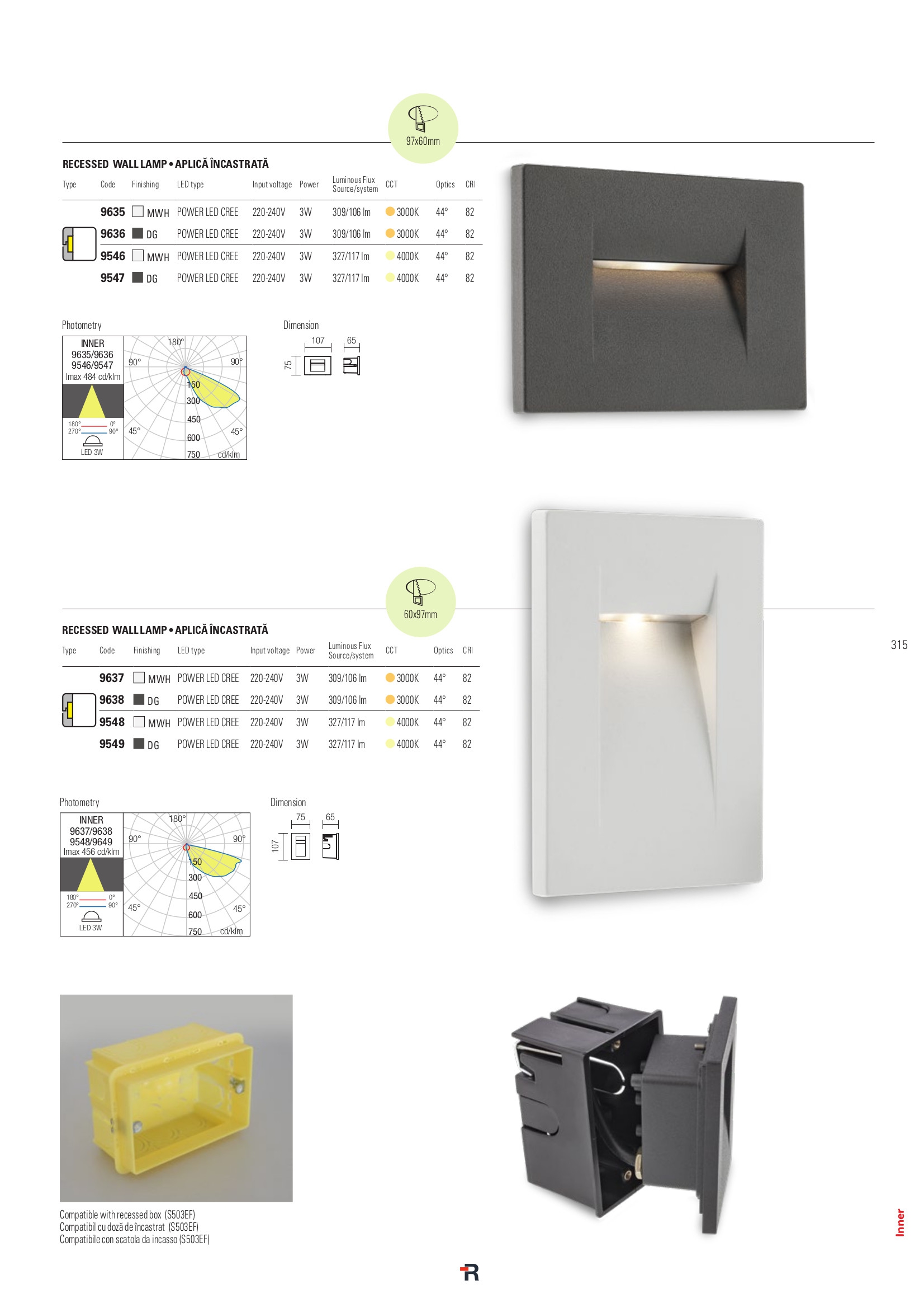 Осветителното тяло 9637 INNER AP INC LED/CREE 1X3W IP65 MWH(5F) представлява лед аплик, външна лампа в съвременен стил. 9637 INNER AP INC LED/CREE 1X3W IP65 MWH(5F) е от категорията и е подходящо за осветяване на различни помещения и пространства като: външно осветление, фасадно осветление.