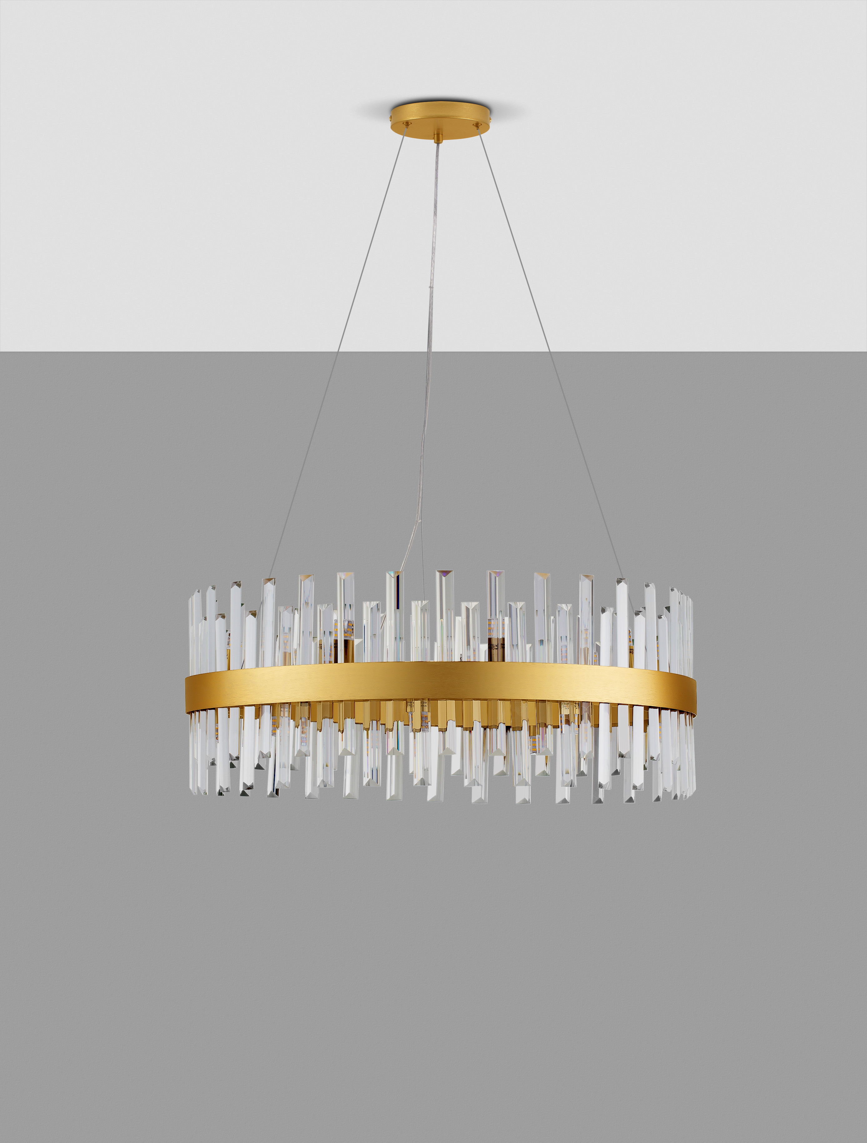 Осветителното тяло 9695118 ще осигури комфорт и естетика във всяко помещение, в което се постави. Цялостната визия и дизайн на лампата и вложените в изработката й материали, като метал в цвят златен сатен, прозрачни призми кристал, ще допринесат за един неповторим стил. Благодарение на дългогодишния опит, качествените материали и строгия контрол на качеството на изработка на производителя Nova-Luce (Гърция), 9695118 е на високо европейско ниво.