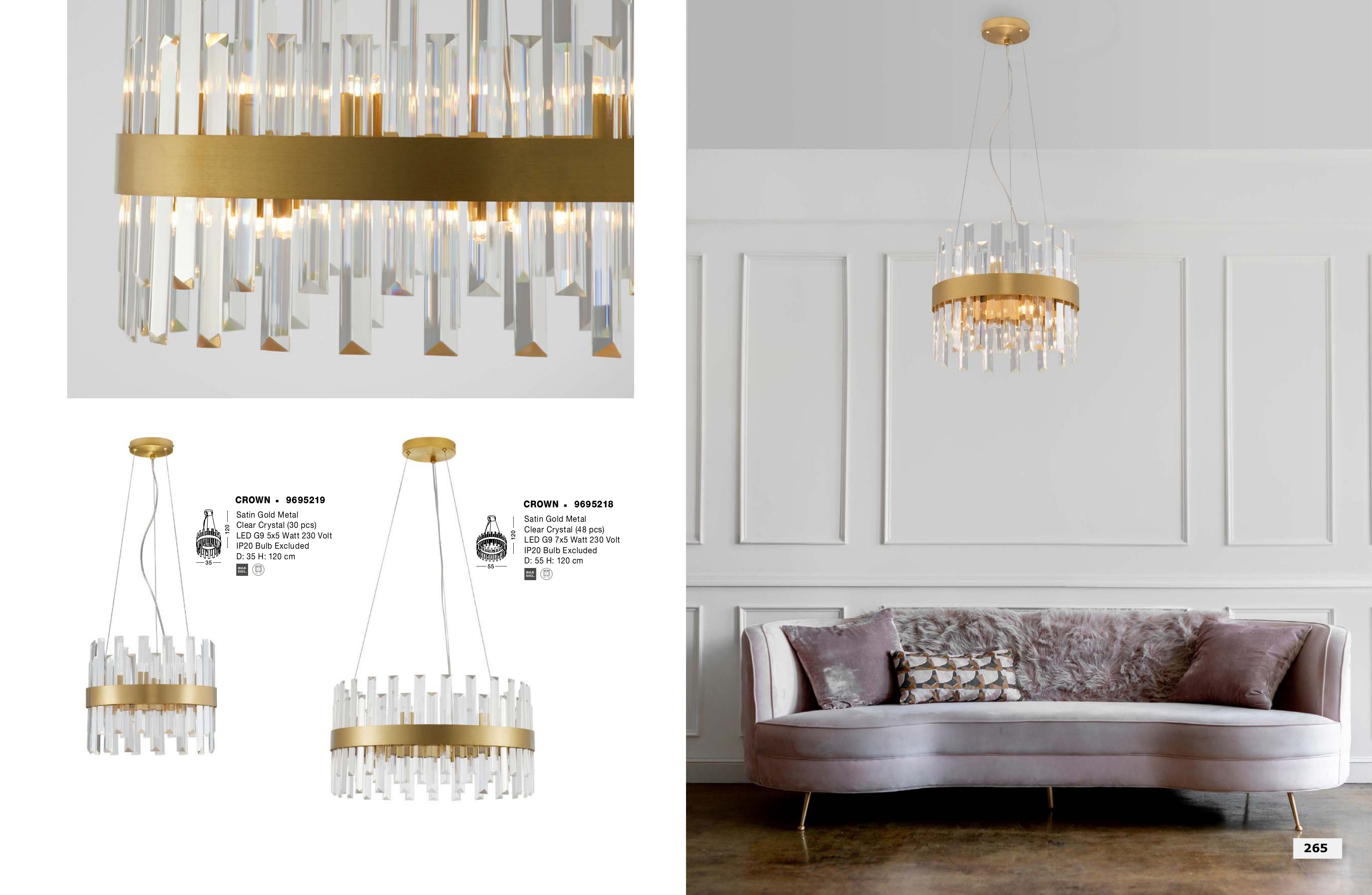 Осветителното тяло 9695218 ще осигури комфорт и естетика във всяко помещение, в което се постави. Цялостната визия и дизайн на лампата и вложените в изработката й материали, като метал в цвят сатенирано злато, кристални призми, ще допринесат за един неповторим стил. Благодарение на дългогодишния опит, качествените материали и строгия контрол на качеството на изработка на производителя Nova-Luce (Гърция), 9695218 е на високо европейско ниво.