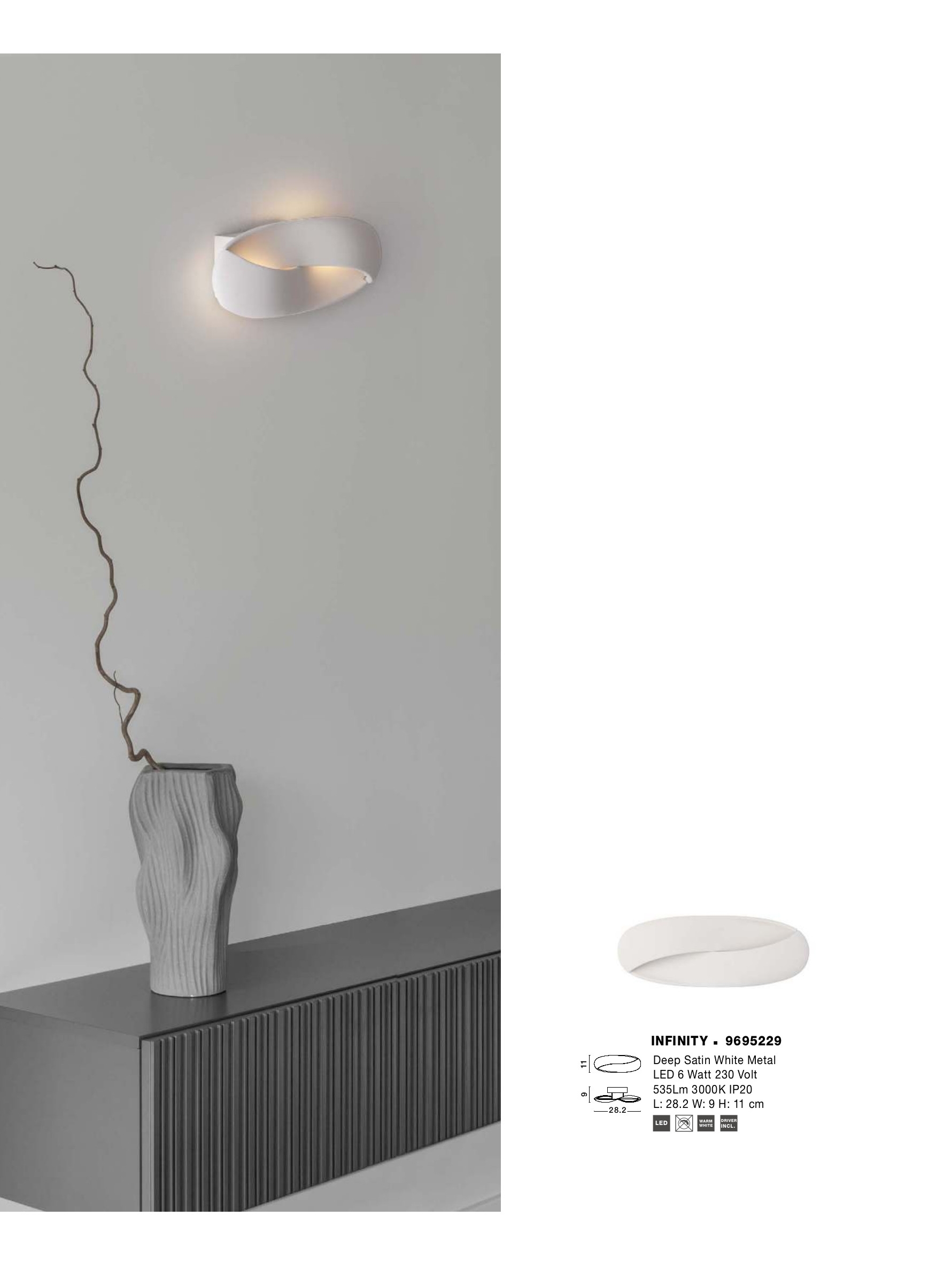 Осветителното тяло 9695229 ще осигури комфорт и естетика във всяко помещение, в което се постави. Цялостната визия и дизайн на лампата и вложените в изработката й материали, като метал в цвят бял сатен, ще допринесат за един неповторим стил. Благодарение на дългогодишния опит, качествените материали и строгия контрол на качеството на изработка на производителя Nova-Luce (Гърция), 9695229 е на високо европейско ниво.