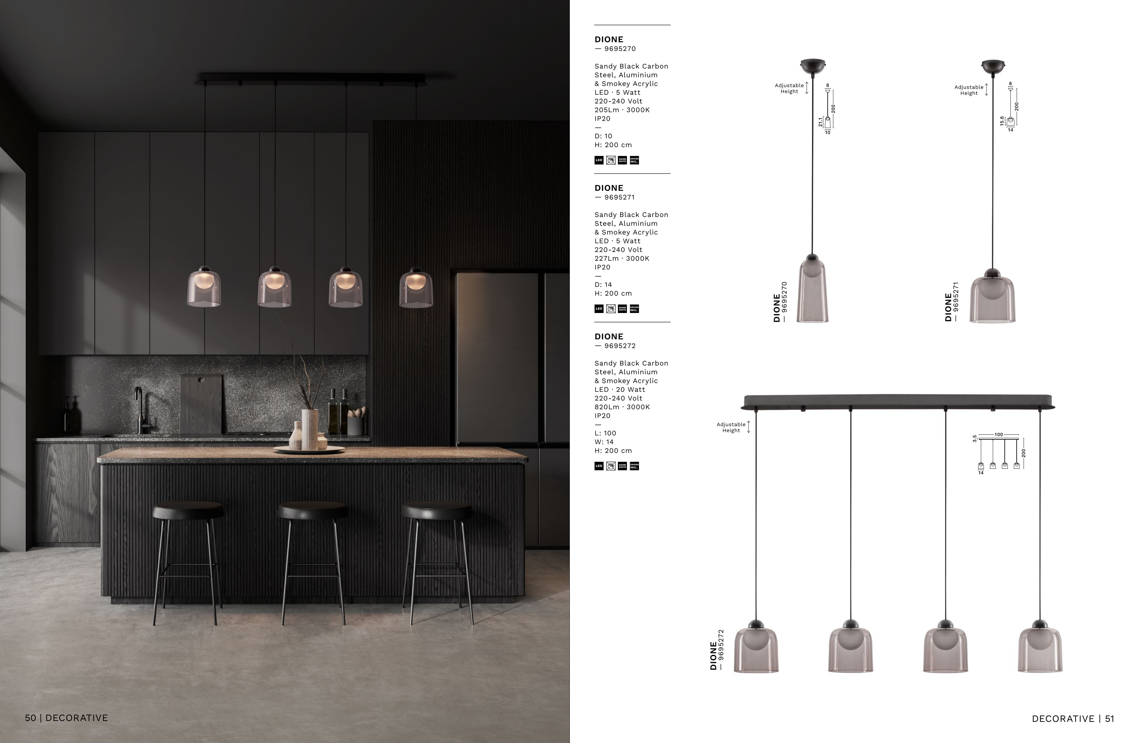 Лед пендел 9695270 ще осигури комфорт и естетика във всяко помещение, в което се постави. Цялостната визия и дизайн на led лампата и вложените в изработката й материали, като стомана в пясъчно черен цвят, алуминий, опушен акрил, ще допринесат за един неповторим стил. Благодарение на дългогодишния опит в производството на лед осветление, качествените материали и строгия контрол на качеството на изработка на производителя Nova-Luce (Гърция), 9695270 е на високо европейско ниво.