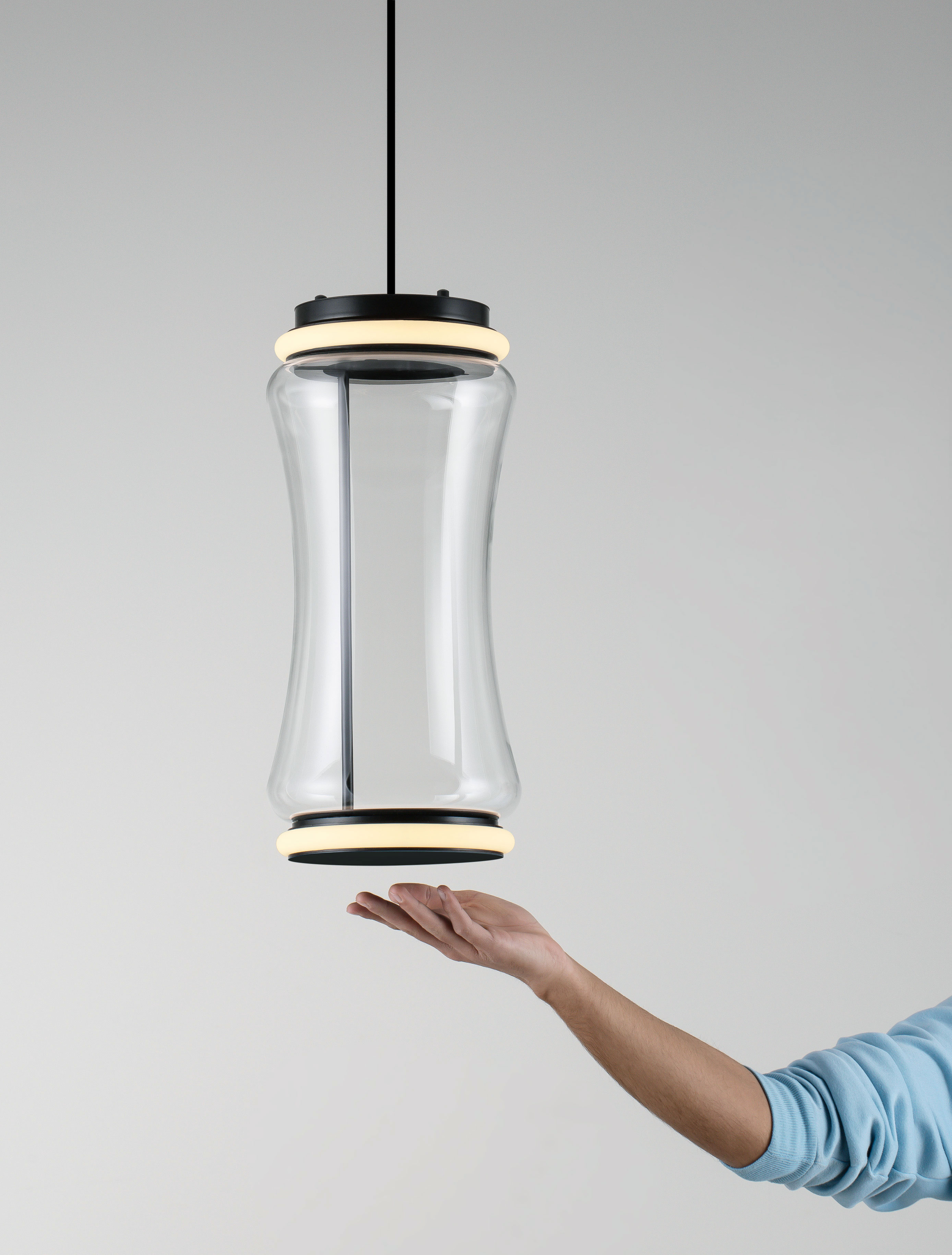 стомана и алуминий в матово черен цвят, прозрачно стъкло, димируема чрез сензор за движение