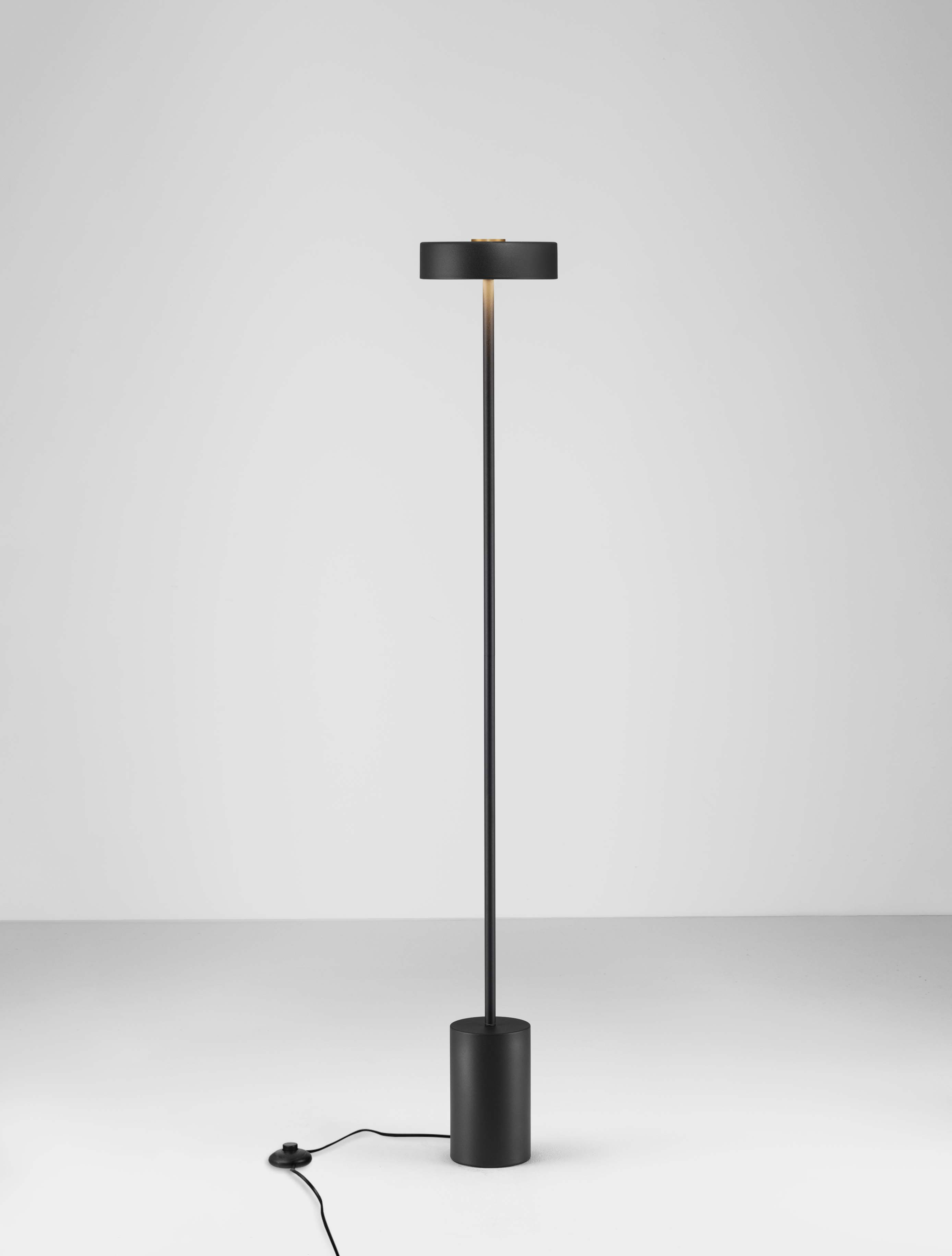 метал в черен цвятх, златен кръг на върха, крачен превключвател ON/OFF, дължина на кабела 250см
