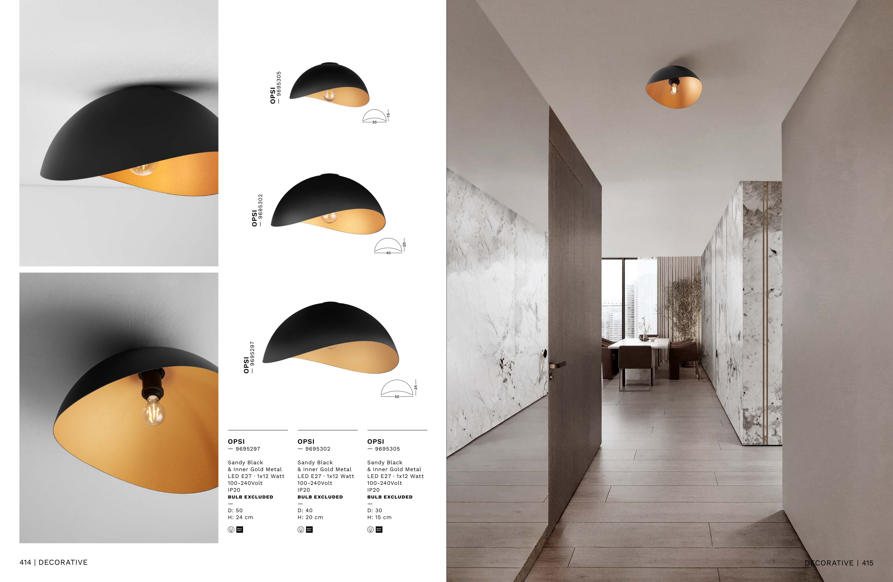 Осветителното тяло 9695305 ще осигури комфорт и естетика във всяко помещение, в което се постави. Цялостната визия и дизайн на лампата и вложените в изработката й материали, като метал в пясъчно черно отвън и златисто отвътре, ще допринесат за един неповторим стил. Благодарение на дългогодишния опит, качествените материали и строгия контрол на качеството на изработка на производителя Nova-Luce (Гърция), 9695305 е на високо европейско ниво.