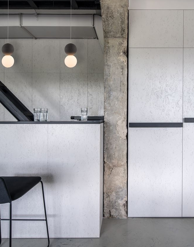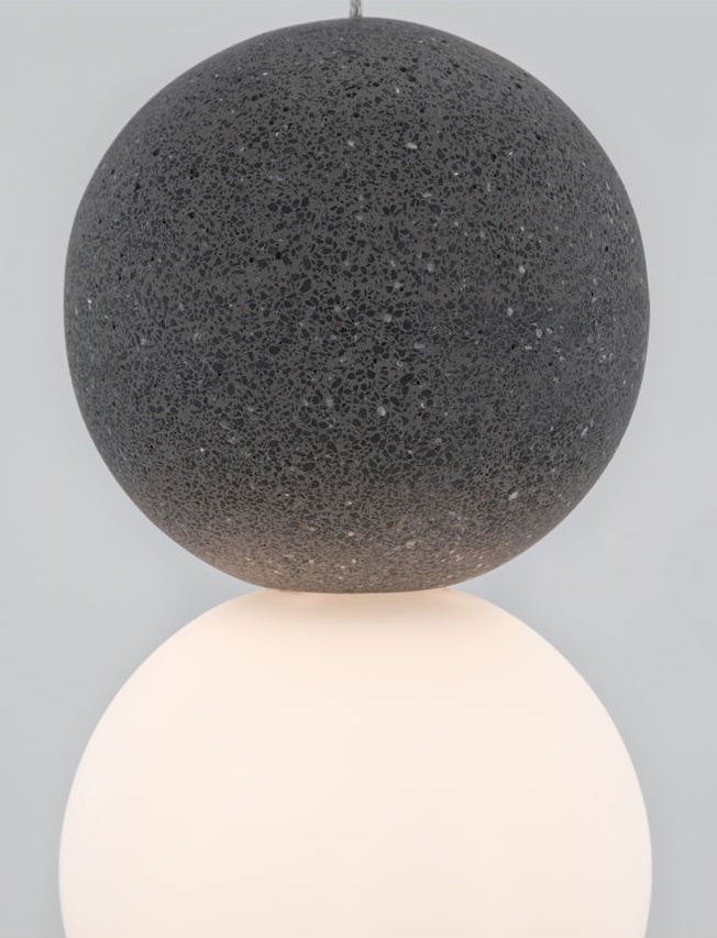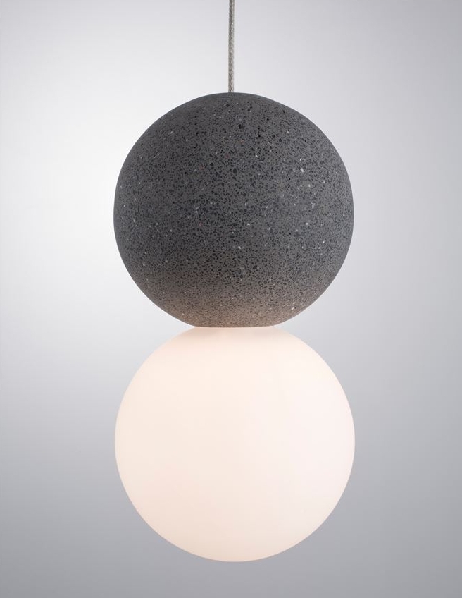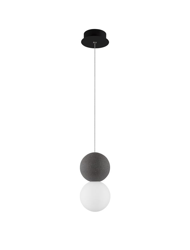 сив текстуриран бетон, дифузер от опалово бяло стъкло, алуминий в черно