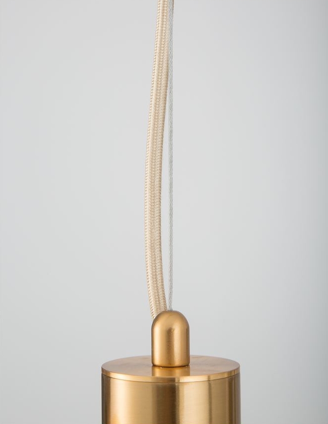 метал в цвят античен месинг, стъкло в цвят бял опал, кабел със златна текстилна оплетка