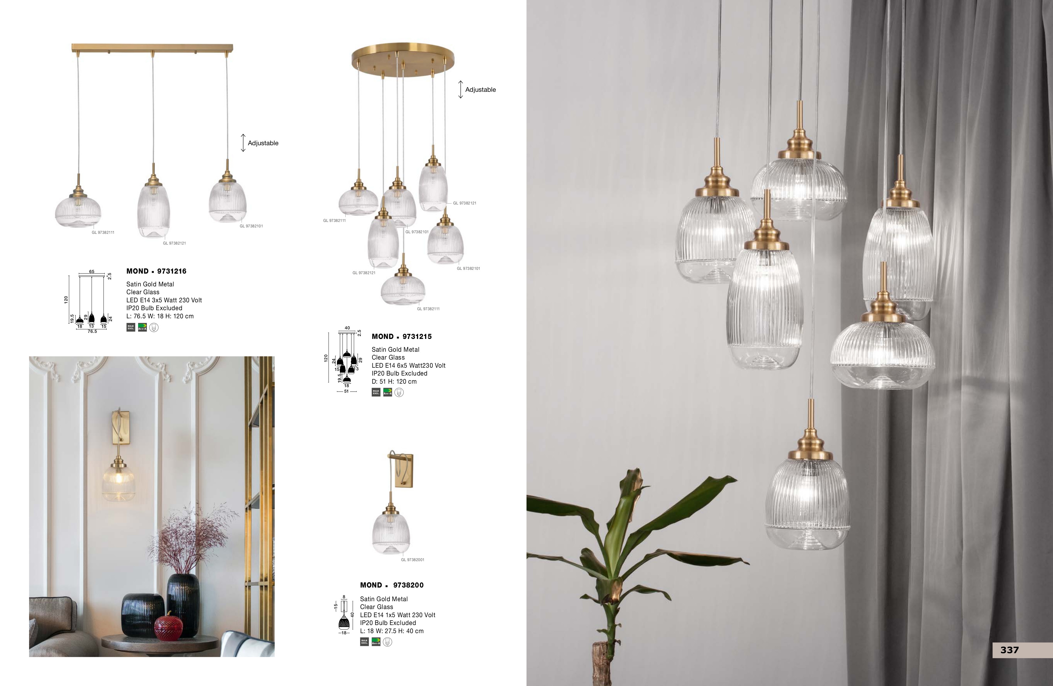 За стила и естетиката на интериора допринасят, както цялостната визия и дизайн на осветителното тяло, така и вложените от производителя в изработката висококачествени материали, като метал в цвят сатенирано злато, стъкло.