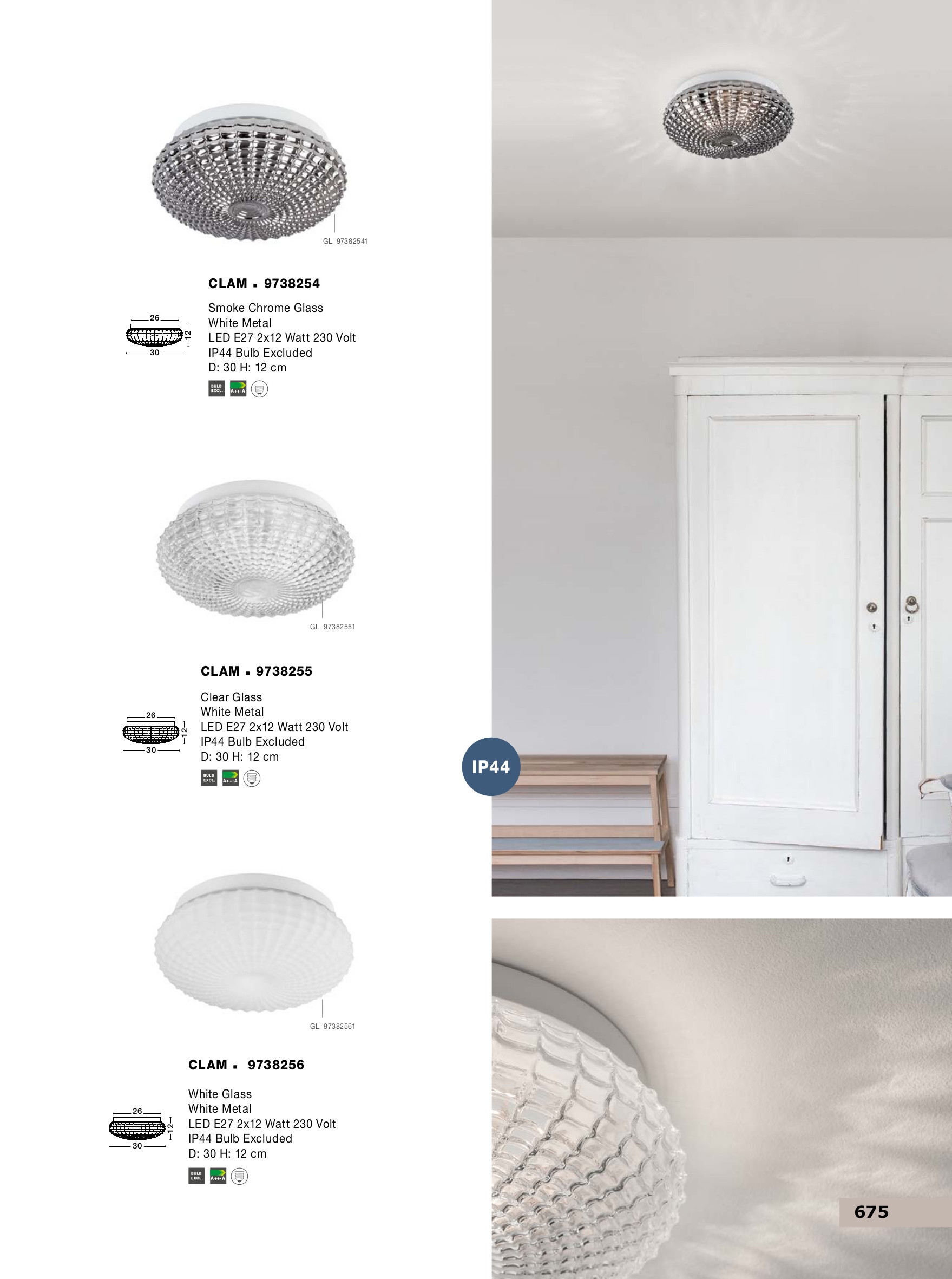 Осветителното тяло 9738255 ще осигури комфорт и естетика във всяко помещение, в което се постави. Цялостната визия и дизайн на лампата и вложените в изработката й материали, като прозрачно релефно стъкло, метал в бял цвят, ще допринесат за един неповторим стил. Благодарение на дългогодишния опит, качествените материали и строгия контрол на качеството на изработка на производителя Nova-Luce (Гърция), 9738255 е на високо европейско ниво.