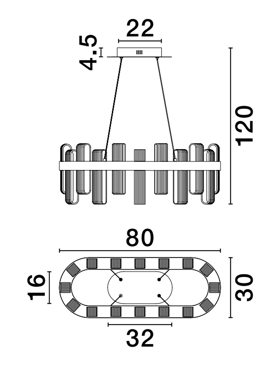 Ел. мощност 1 х 81 W Размери Ф60см x 120см x 30см Производител Nova-Luce, Гърция