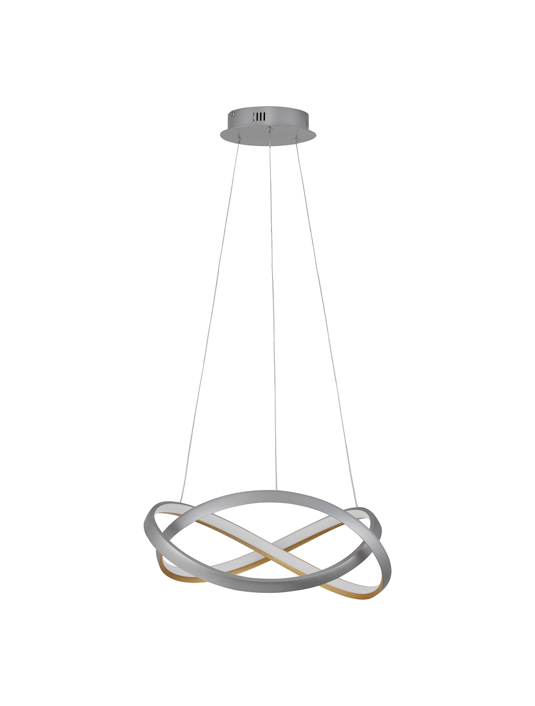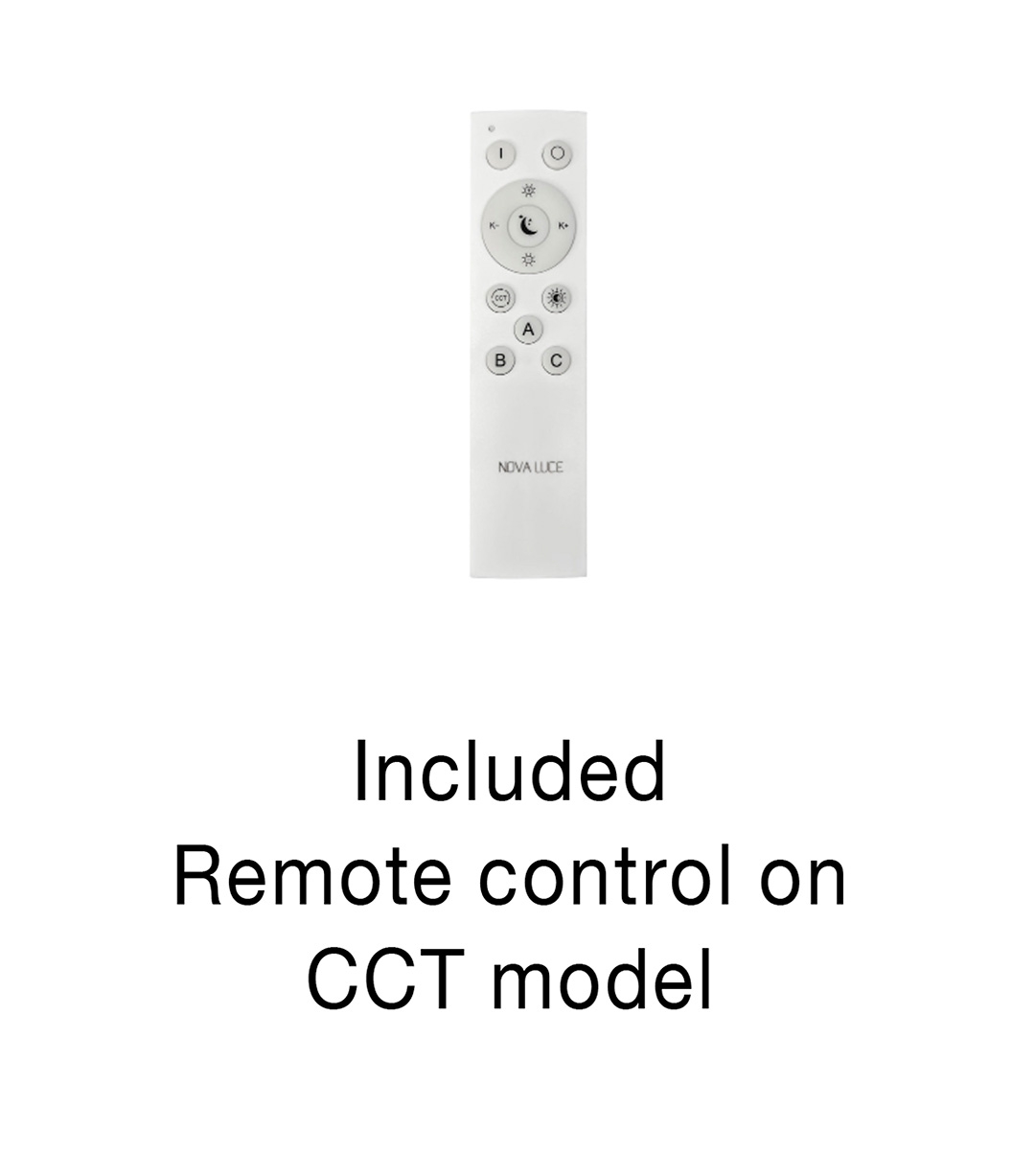 алуминий в цвят пясъчно сребърно и златно, полимер в бяло, промяна на цветната температура (2700К - 3500К - 5000К) и димиране чрез дистанционно, включено в комплекта
