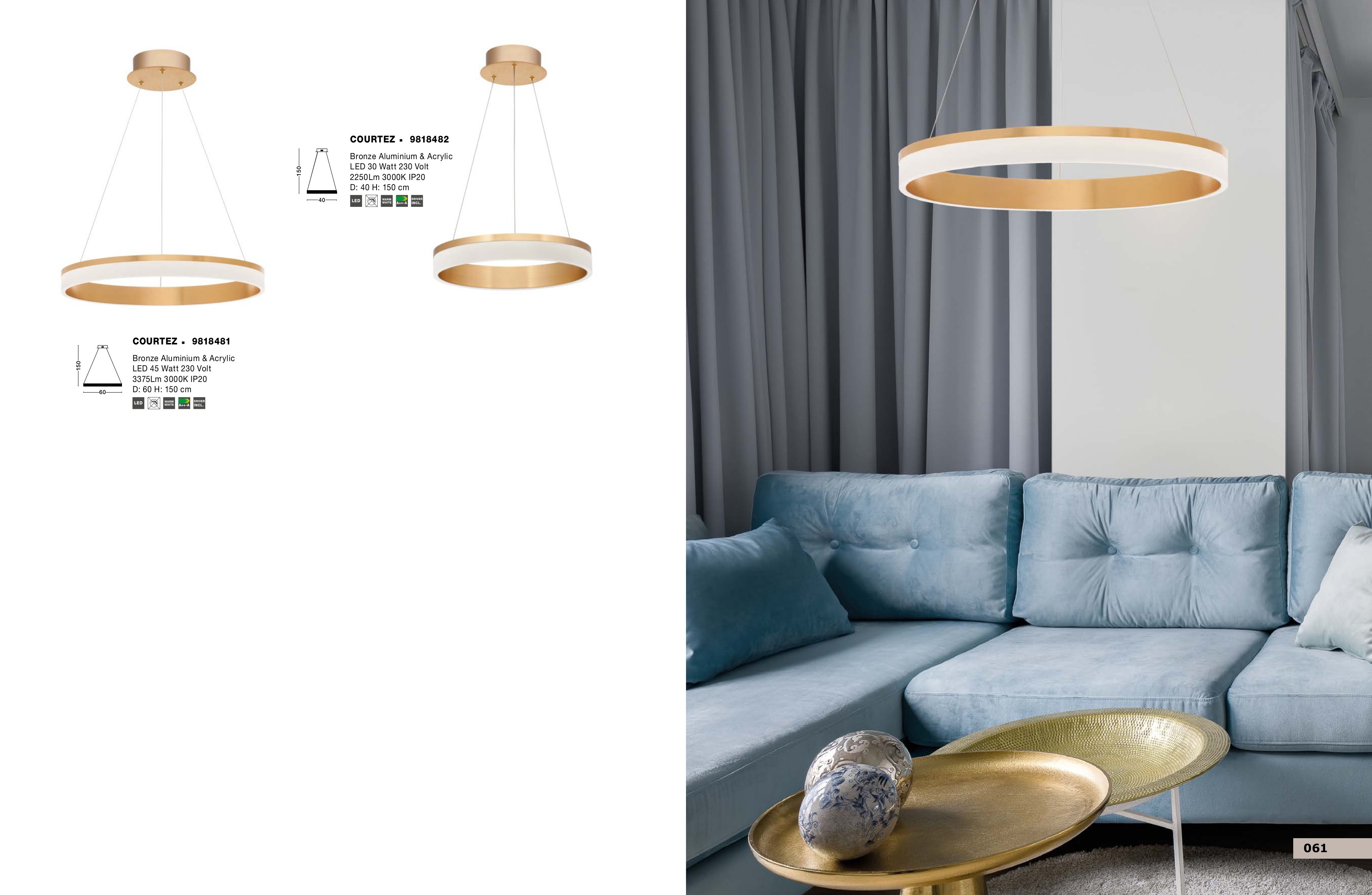 Осветителното тяло 9818482 ще осигури комфорт и естетика във всяко помещение, в което се постави. Цялостната визия и дизайн на лампата и вложените в изработката й материали, като алуминий в цвят бронз, акрил, ще допринесат за един неповторим стил. Благодарение на дългогодишния опит, качествените материали и строгия контрол на качеството на изработка на производителя Nova-Luce (Гърция), 9818482 е на високо европейско ниво.