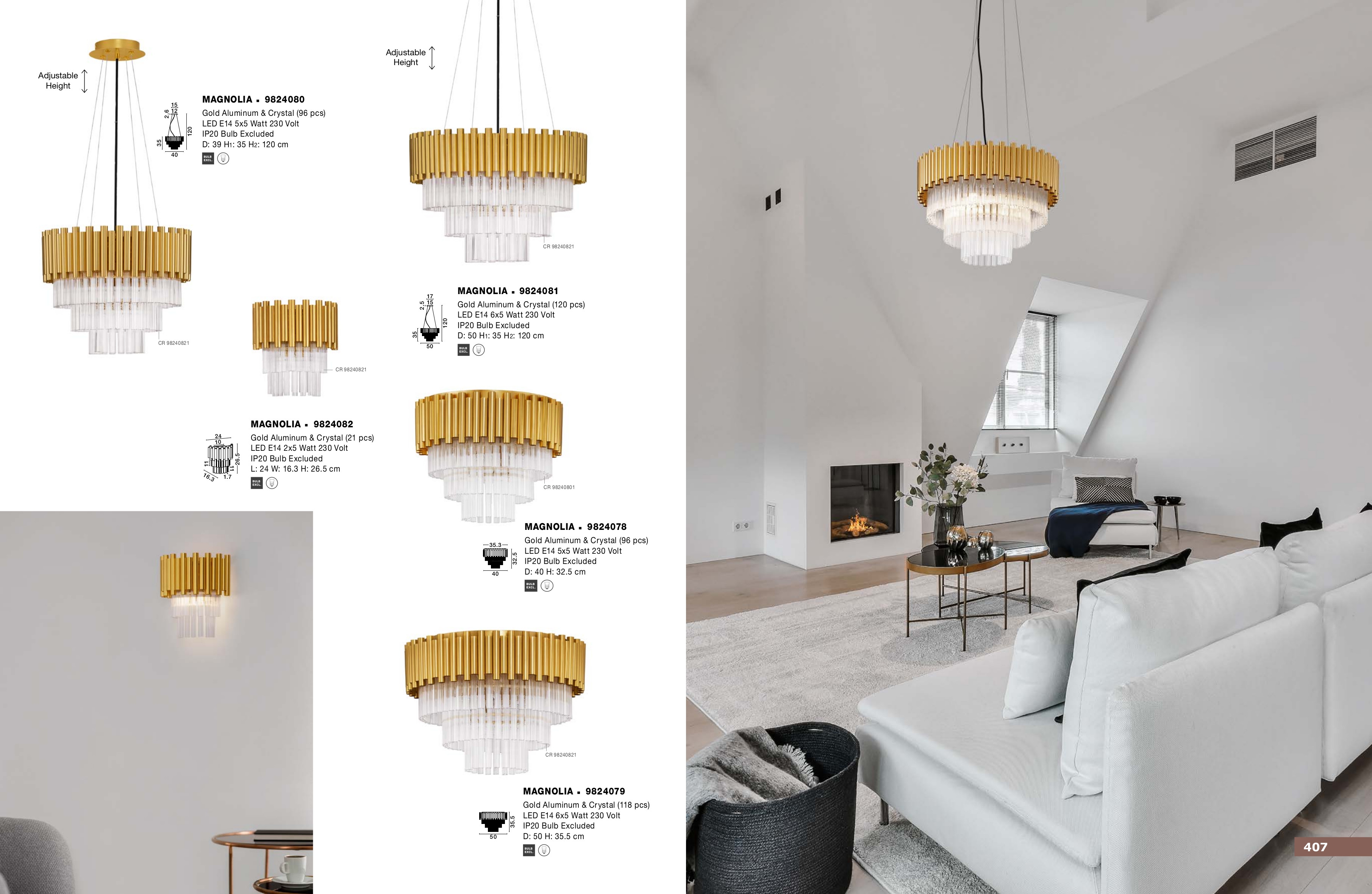 За стила и естетиката на интериора в изключително висока степен допринасят, както цялостната визия и дизайн на осветителното тяло, така и вложените в изработката висококачествени материали, като алуминий в цвят злато, кристали.