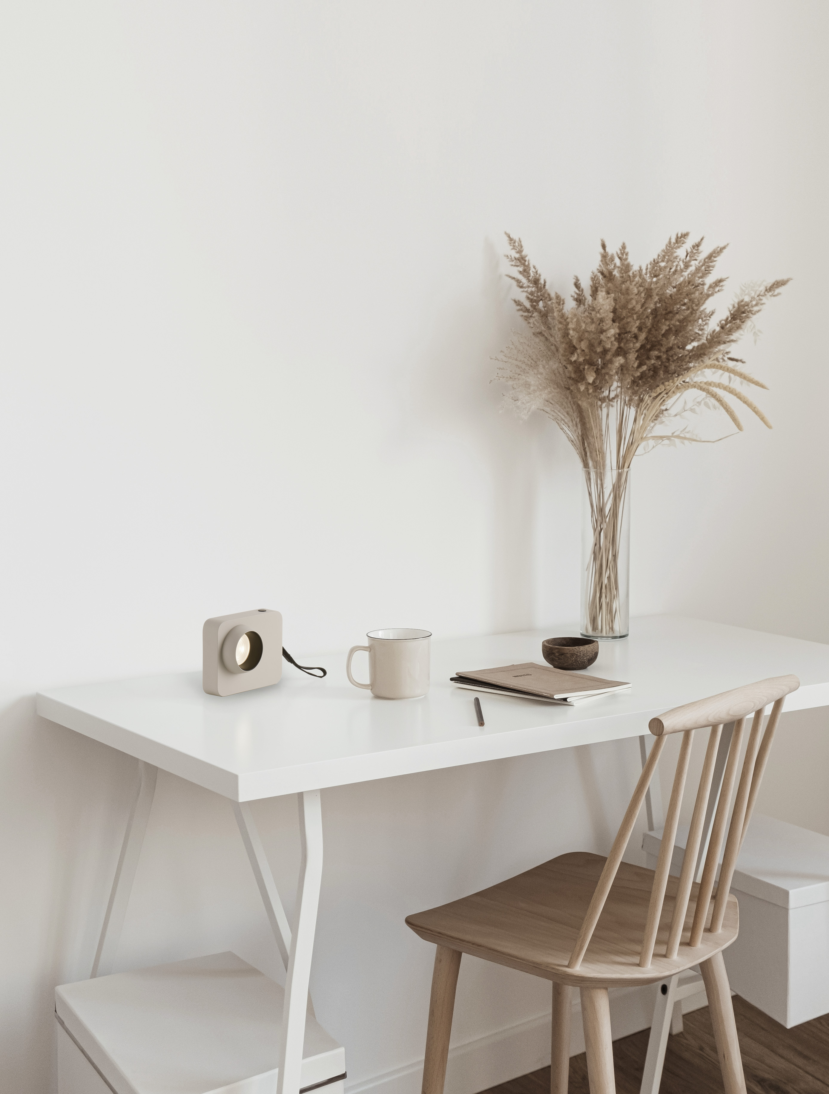преносима лампа, алуминий в бежов цвят, боя устойчива на пръстови отпечатъци, димер с докосване, зареждане с кабел с накрайник тип С, 5V