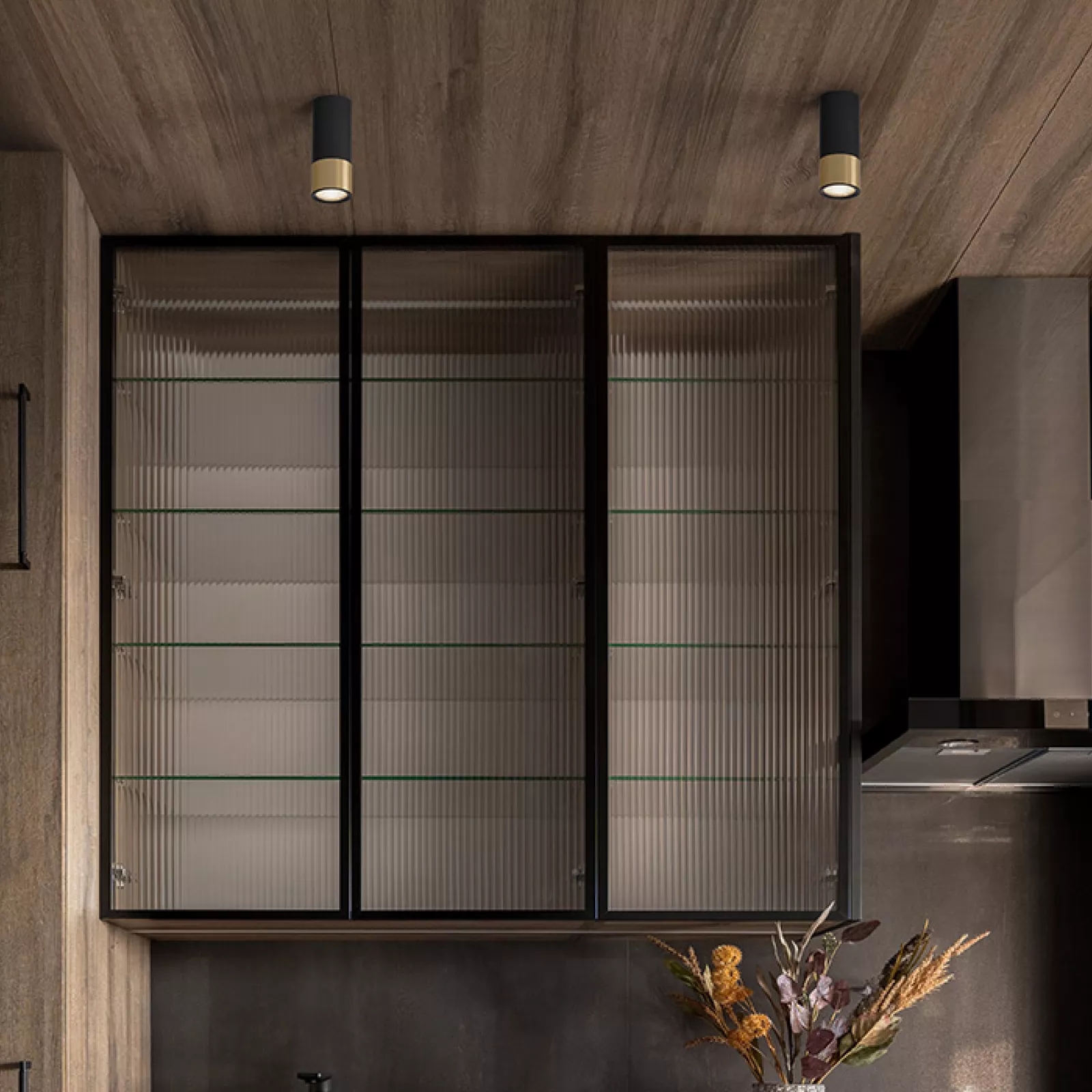 За стила, хармонията и естетиката на обстановката допринасят, както цялостната визия и дизайн на осветителното тяло, така и вложените в изработката качествени материали, като: алуминий в черен цвят, пръстен в цвят злато.