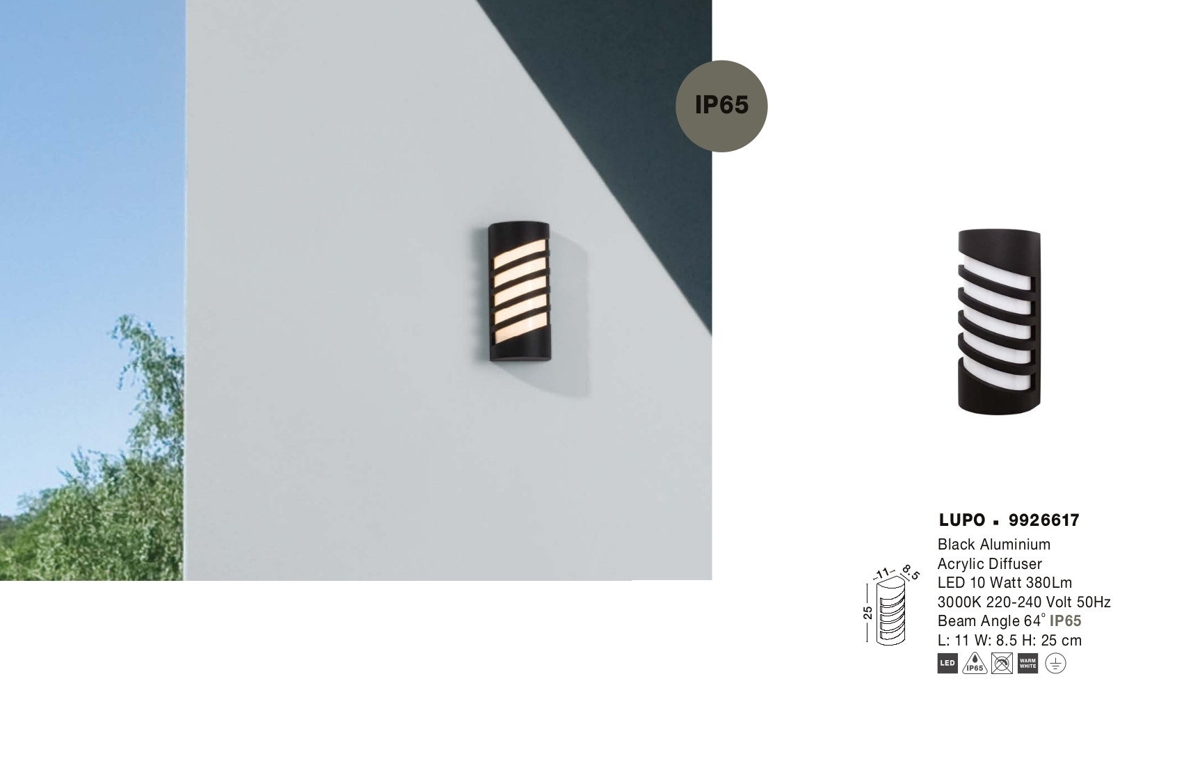 Лед аплик, външна лампа 9926617 ще осигури комфорт и естетика във всяко помещение, в което се постави. Цялостната визия и дизайн на led лампата и вложените в изработката й материали, като алуминий в черен цвят, акрил в бяло, ще допринесат за един неповторим стил. Благодарение на дългогодишния опит в производството на лед осветление, качествените материали и строгия контрол на качеството на изработка на производителя Nova-Luce (Гърция), 9926617 е на високо европейско ниво.