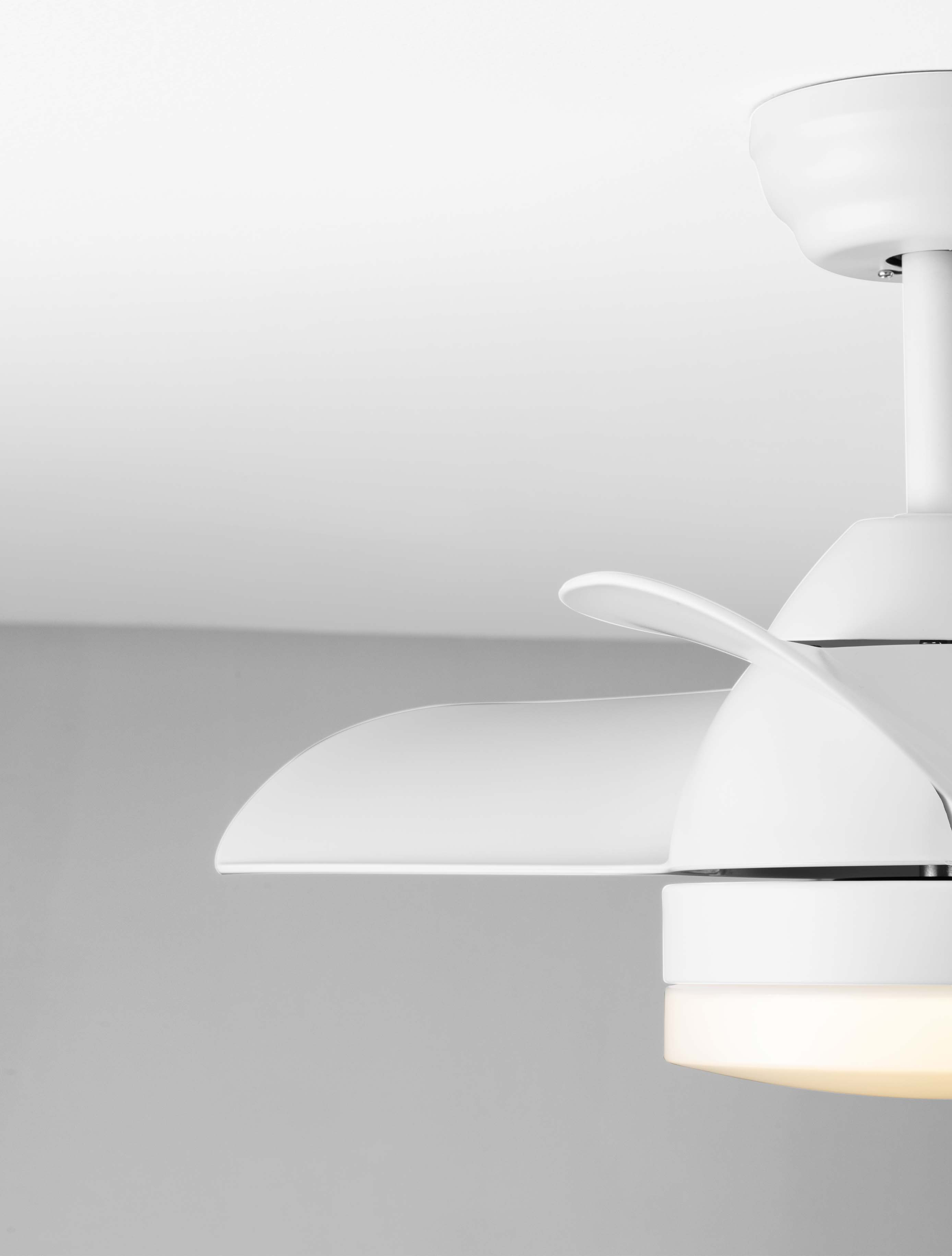 метал в цвят бял мат, полимер в бяло, (ABS), ССТ 3000-4000-6500K, 40W DC двигател с 6 скорости, зимен и летен режим на работа, дистанционно включено в комплекта