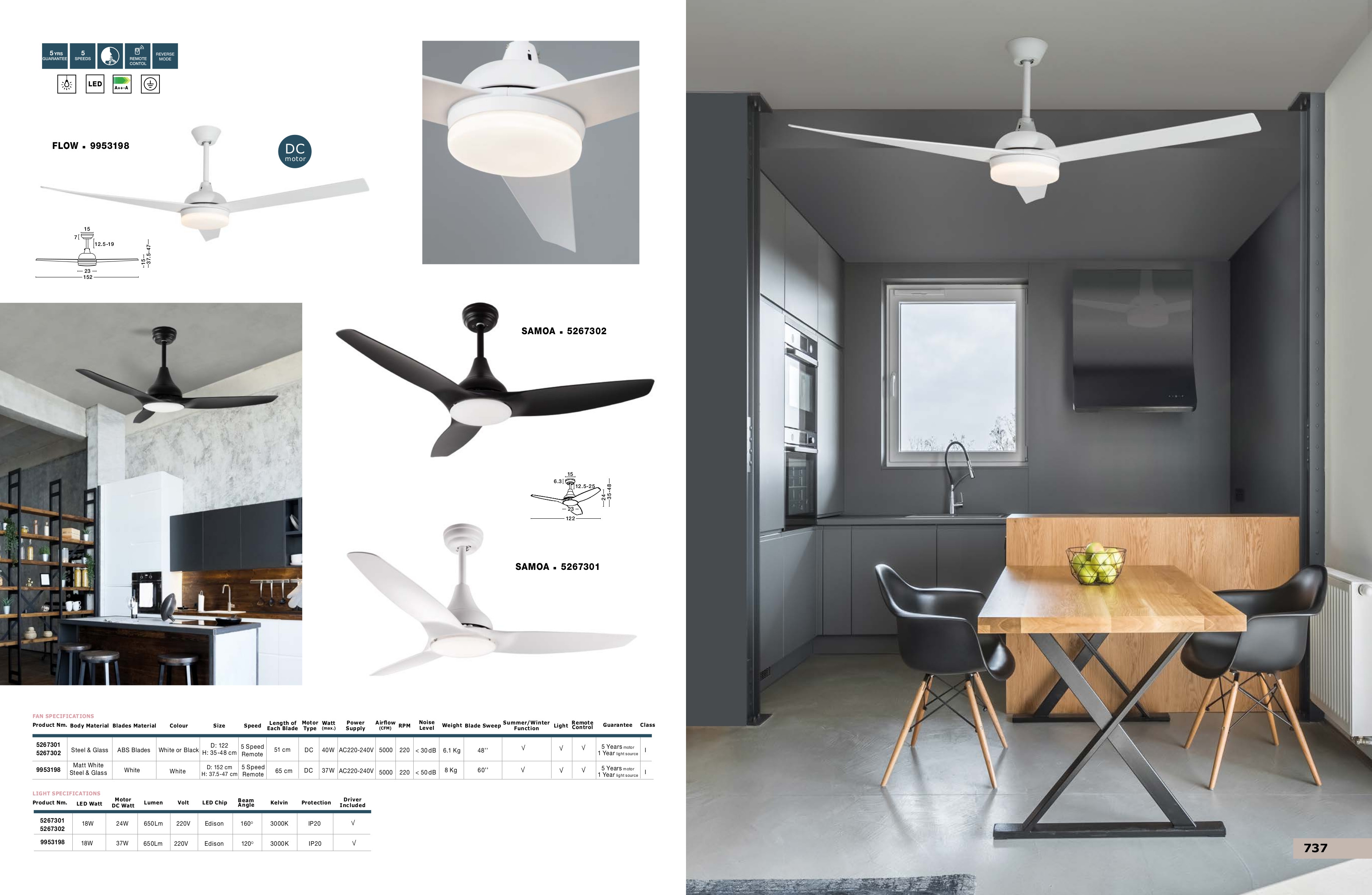 Осветителното тяло 9953198 ще осигури комфорт и естетика във всяко помещение, в което се постави. Цялостната визия и дизайн на лампата и вложените в изработката й материали, като матово бяла стомана, матирано стъкло, 5 скорости, DC мотор, дистанционно, ще допринесат за един неповторим стил. Благодарение на дългогодишния опит, качествените материали и строгия контрол на качеството на изработка на производителя Nova-Luce (Гърция), 9953198 е на високо европейско ниво.