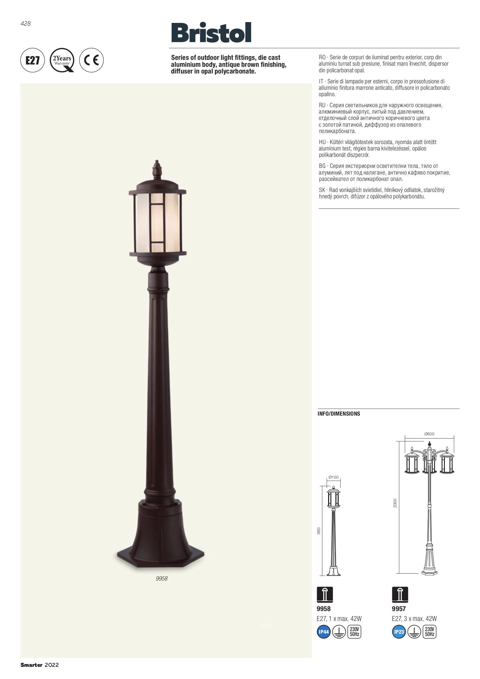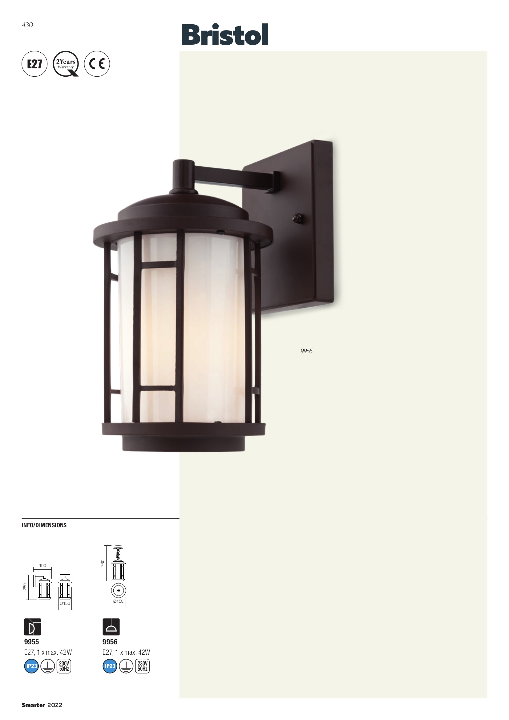 Осветителното тяло 9955 ще осигури комфорт и естетика във всяко помещение, в което се постави. Цялостната визия и дизайн на лампата и вложените в изработката й материали, като алуминий лят под налягане в цвят антично кафяво, поликарбонат в цвят бял опал, ще допринесат за един неповторим стил. Благодарение на дългогодишния опит, качествените материали и строгия контрол на качеството на изработка на дизайнерската линия Redo Smarter на производителя Redo (Румъния), 9955 е на високо европейско ниво.