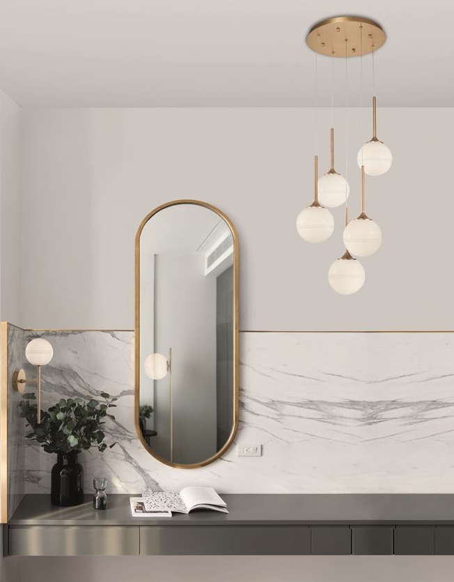 За стила и естетиката на интериора допринасят, както цялостната визия и дизайн на осветителното тяло, така и вложените от производителя в изработката висококачествени материали, като метал в цвят златен месинг, стъкло в цвят бял опал.