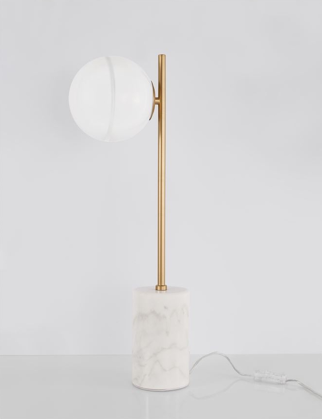 метал в цвят златен месинг, мрамор, стъкло в цвят бял опал