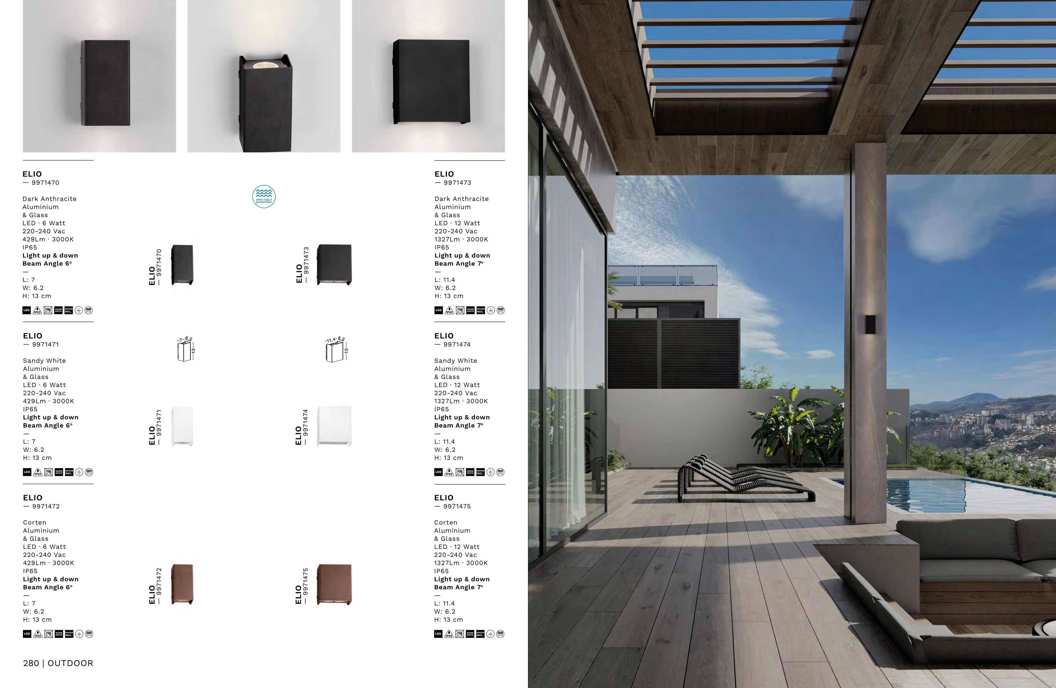 Осветителното тяло 9971471 представлява аплик, външна лампа в съвременен стил. 9971471 е от категорията осветителни тела и е подходящо за осветяване на различни помещения и пространства като: външно осветление, фасадно осветление.
