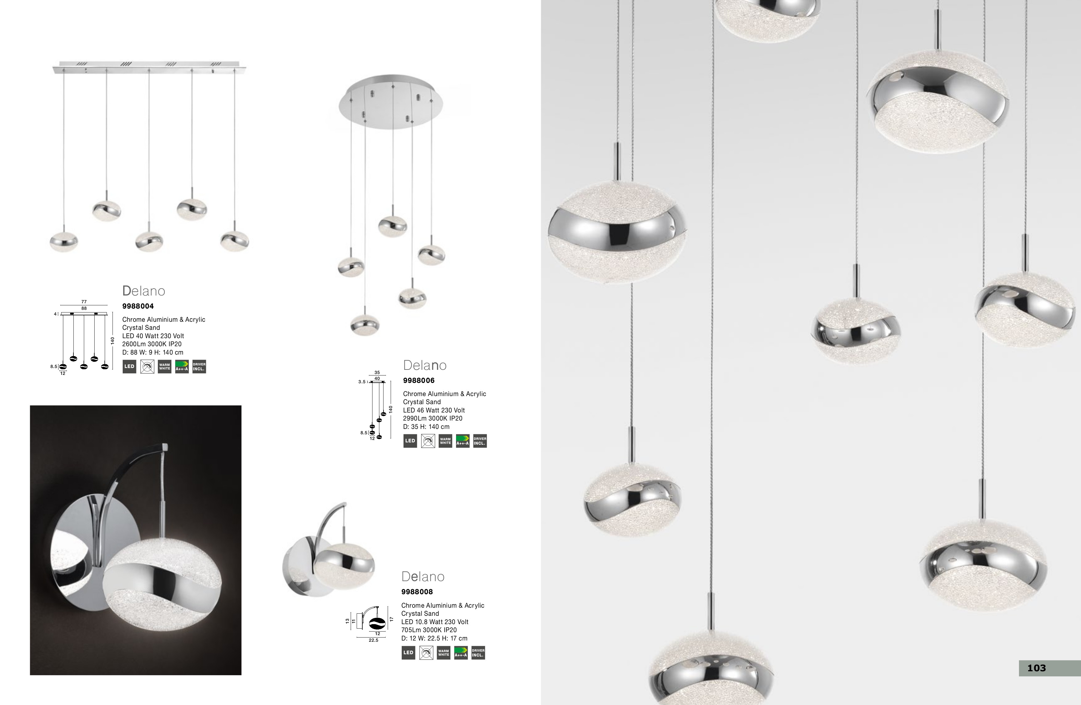 Осветителното тяло 9988006 ще осигури комфорт и естетика във всяко помещение, в което се постави. Цялостната визия и дизайн на лампата и вложените в изработката й материали, като алуминий с хромово покритие, полимер, кристал на прах, ще допринесат за един неповторим стил. Благодарение на дългогодишния опит, качествените материали и строгия контрол на качеството на изработка на производителя Nova-Luce (Гърция), 9988006 е на високо европейско ниво.