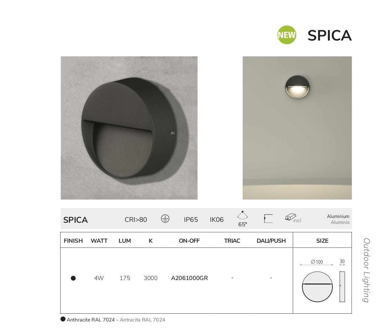 Осветителното тяло A2061000GR (Wall lamp) представлява аплик, външна лампа в съвременен стил. A2061000GR (Wall lamp) е от категорията осветителни тела и е подходящо за осветяване на различни помещения и пространства като: външно осветление, фасадно осветление.