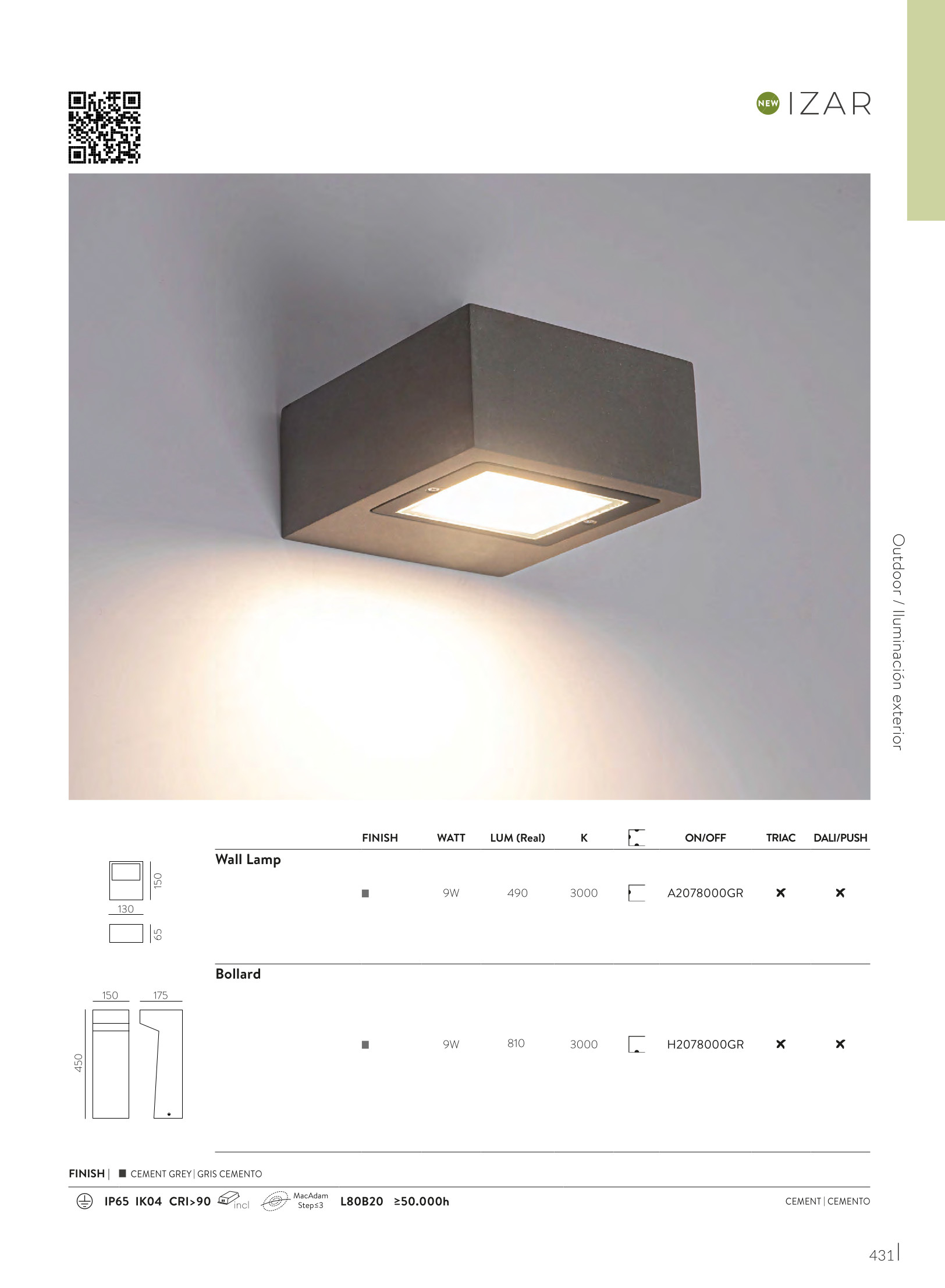 Лед аплик, външна лампа A2078000GR ще осигури комфорт и естетика във всяко помещение, в което се постави. Цялостната визия и дизайн на led лампата и вложените в изработката й материали, като цимент, ще допринесат за един неповторим стил. Благодарение на дългогодишния опит в производството на лед осветление, качествените материали и строгия контрол на качеството на изработка на производителя ACB (Испания), A2078000GR е на високо европейско ниво.
