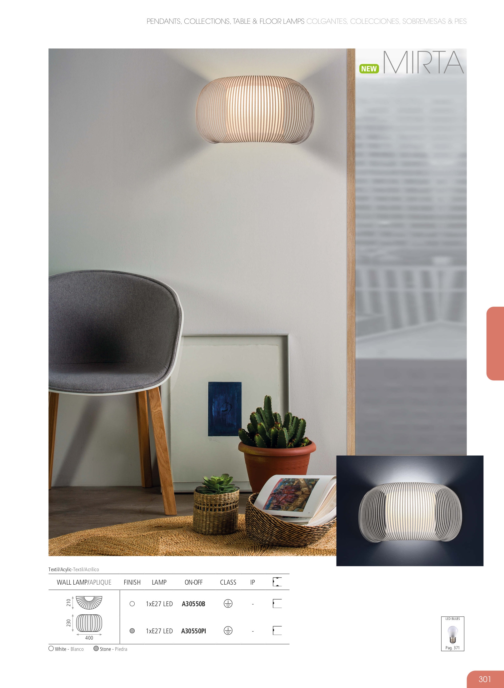 Осветителното тяло A30550PI (Wall E27 Stone) ще осигури комфорт и естетика във всяко помещение, в което се постави. Цялостната визия и дизайн на лампата и вложените в изработката й материали, като текстил в цвят камък, полимер, ще допринесат за един неповторим стил. Благодарение на дългогодишния опит, качествените материали и строгия контрол на качеството на изработка на производителя ACB (Испания), A30550PI (Wall E27 Stone) е на високо европейско ниво.